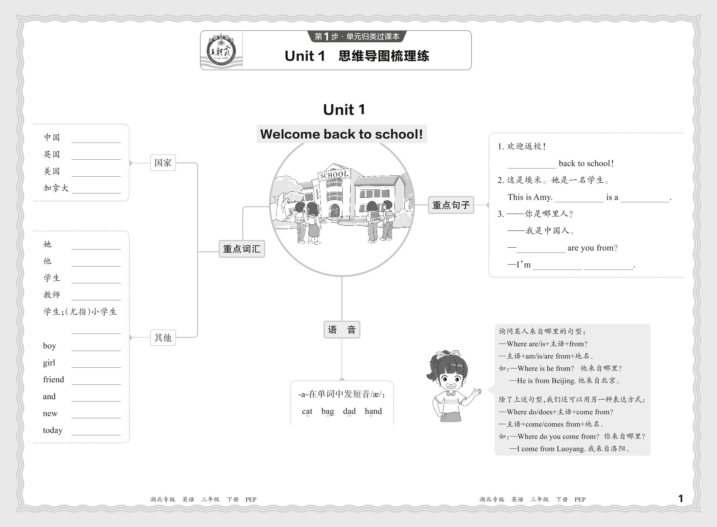 2024春下册三年级英语人教PEP版 期末过课本湖北版·单元归类复习练—Unit 1
