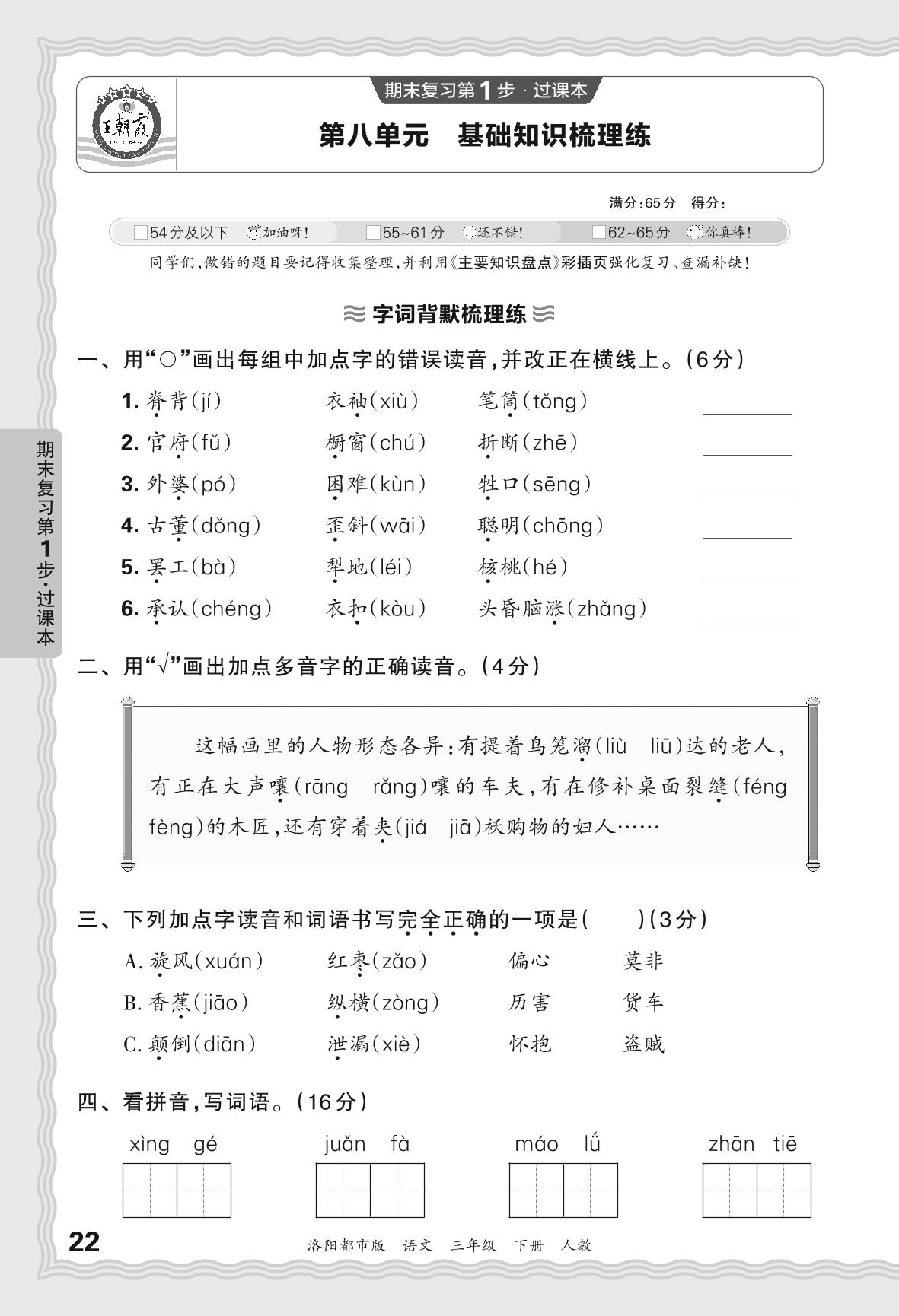 2024春下册三年级语文人教版 期末过课本洛阳版·第八单元 基础知识梳理练