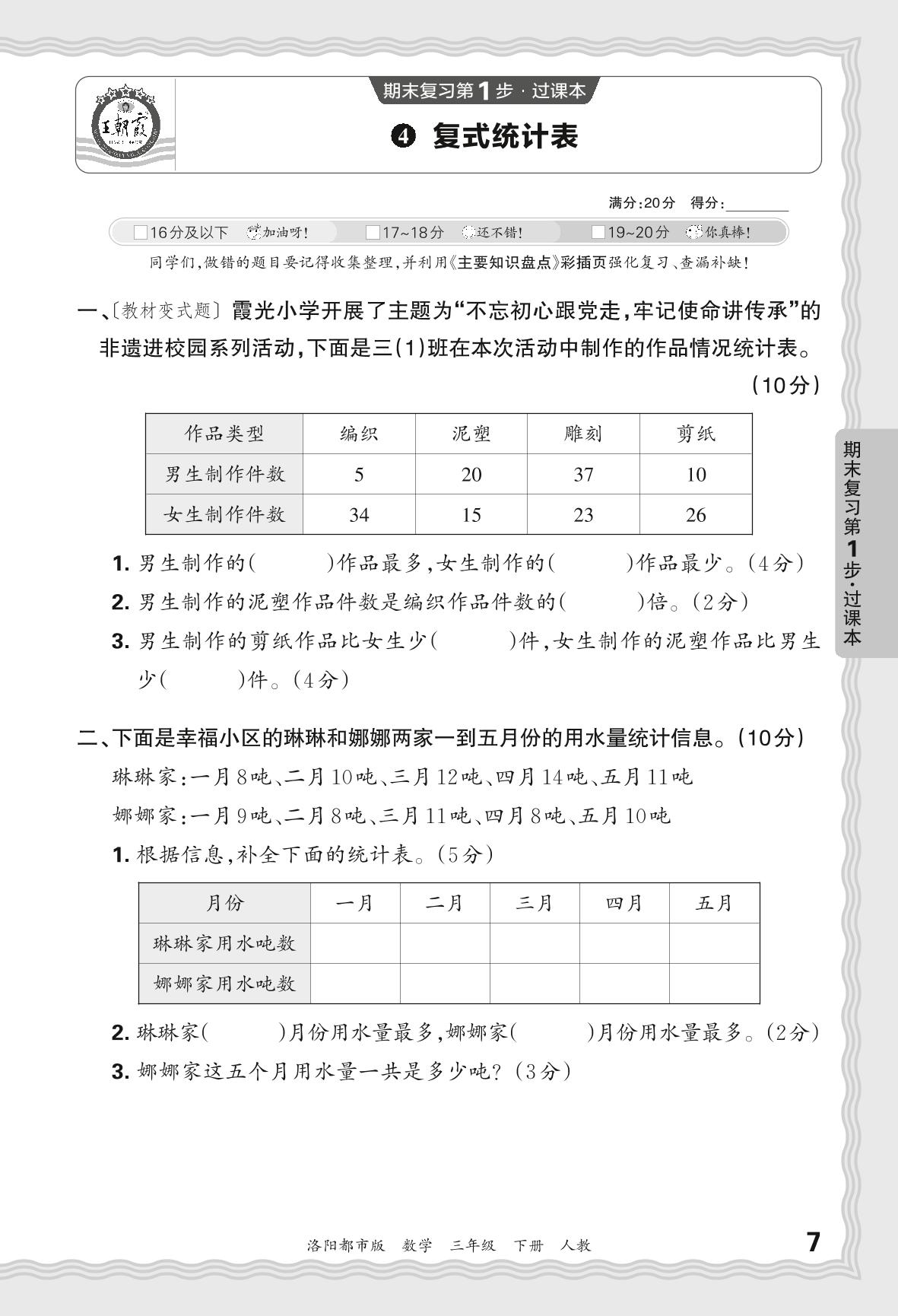 2024春下册三年级数学人教版 期末过课本洛阳版·复式统计表【4】