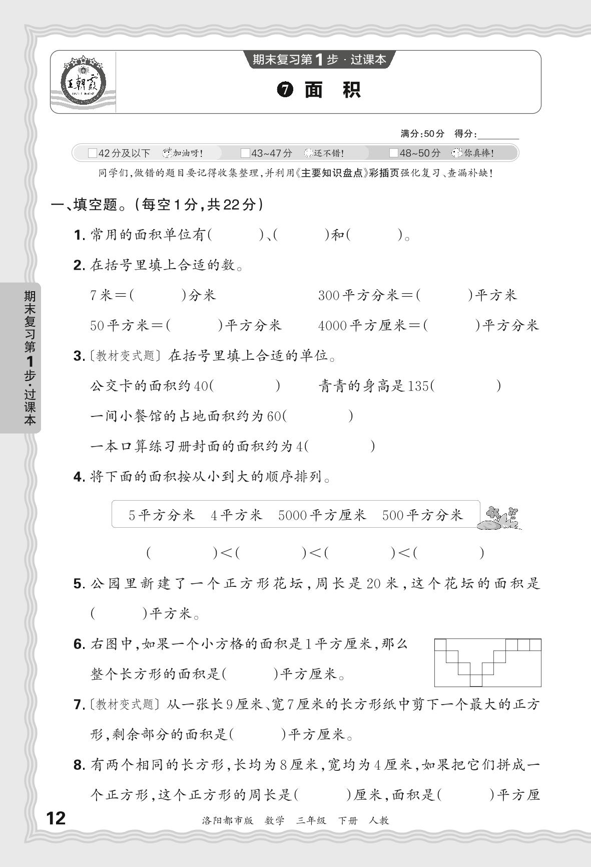 2024春下册三年级数学人教版 期末过课本洛阳版·面积【7】