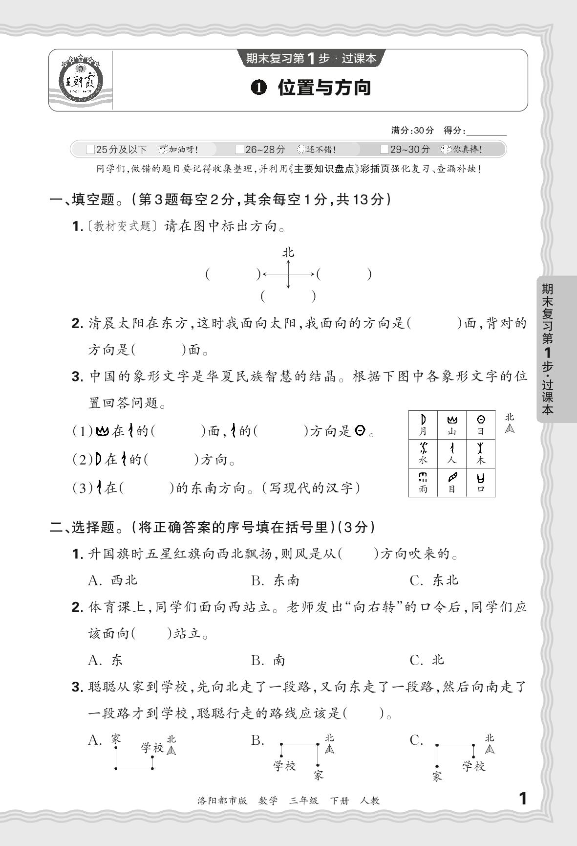 2024春下册三年级数学人教版 期末过课本洛阳版·位置与方向【1】