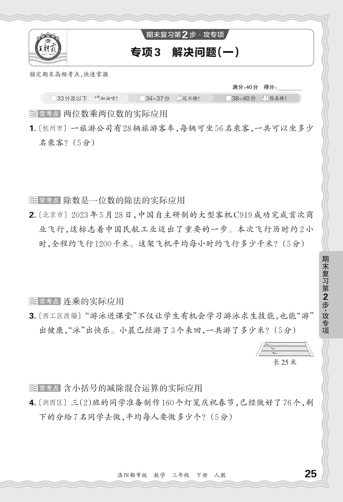 2024春下册三年级数学人教版 期末专项卷洛阳版·解决问题(一)【3】