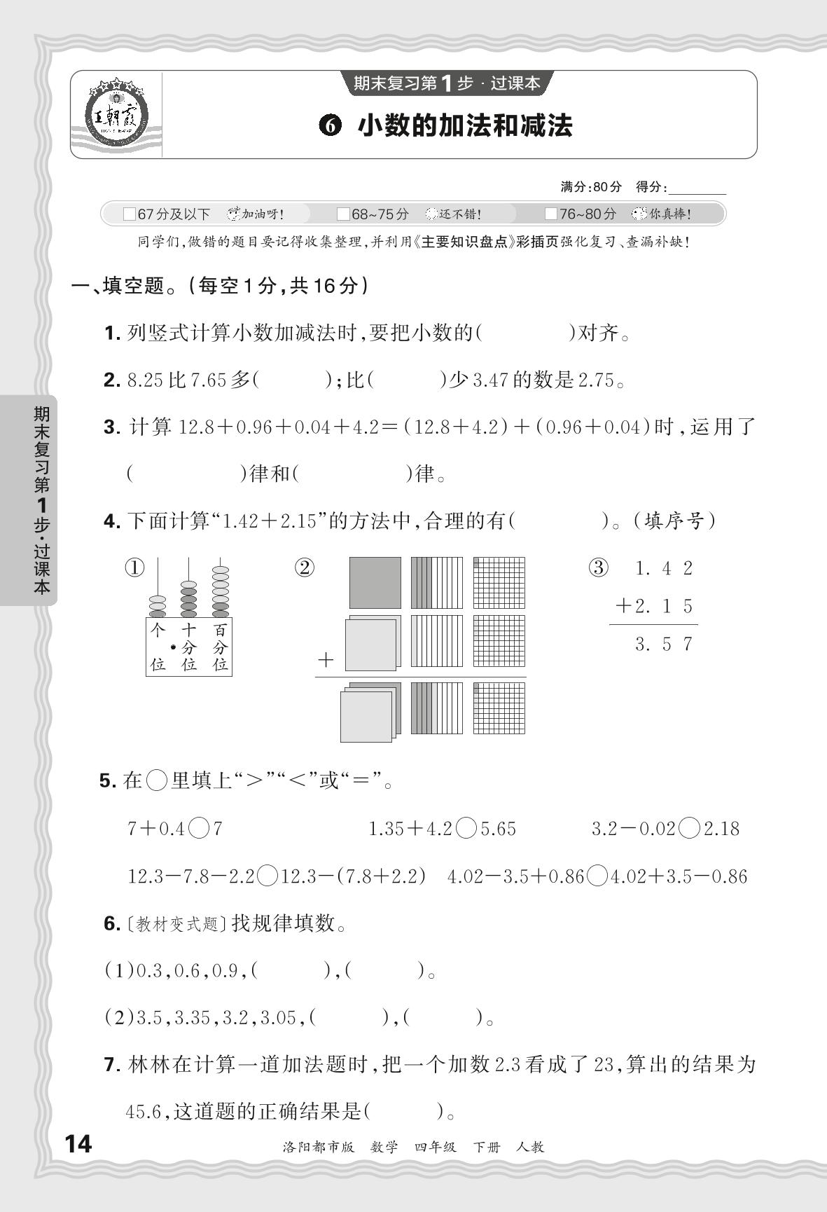 2024春下册四年级数学人教版 期末过课本洛阳版·小数的加法和减法【6】