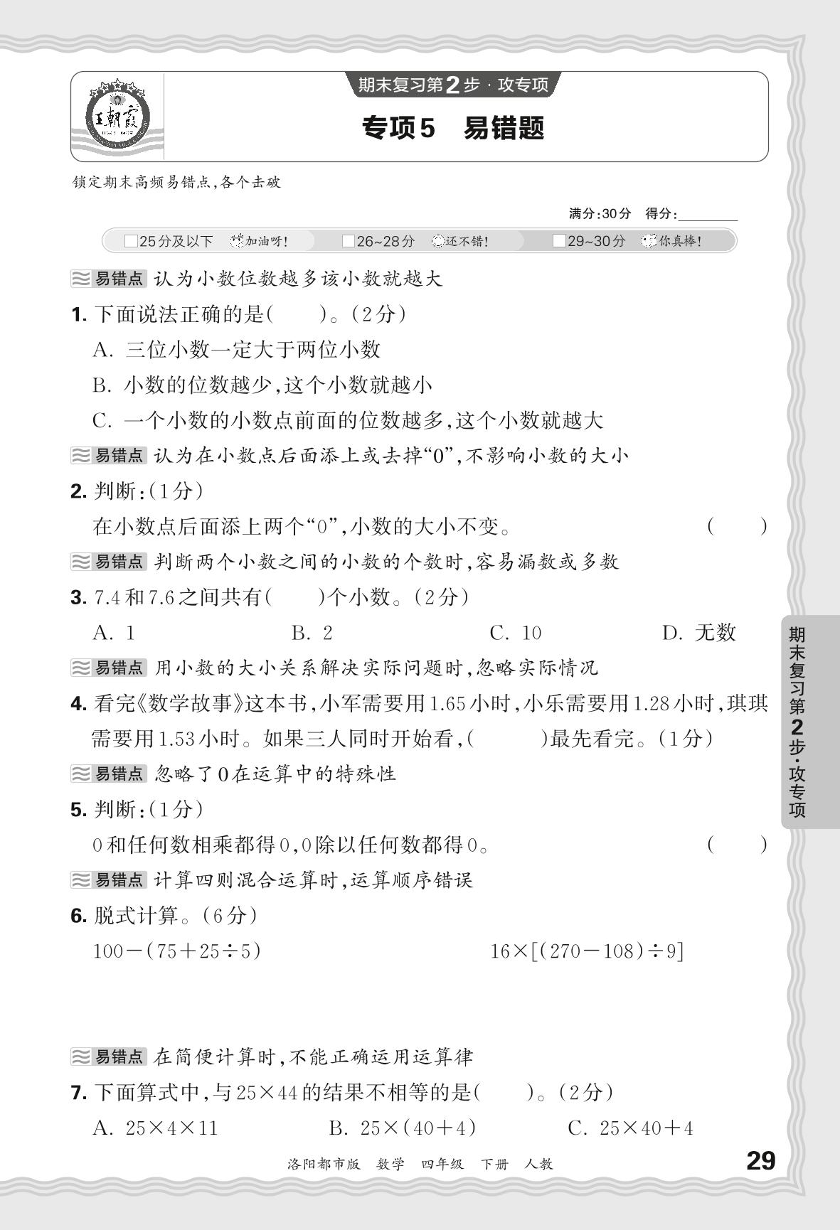 2024春下册四年级数学人教版 期末专项卷洛阳版·易错题【5】