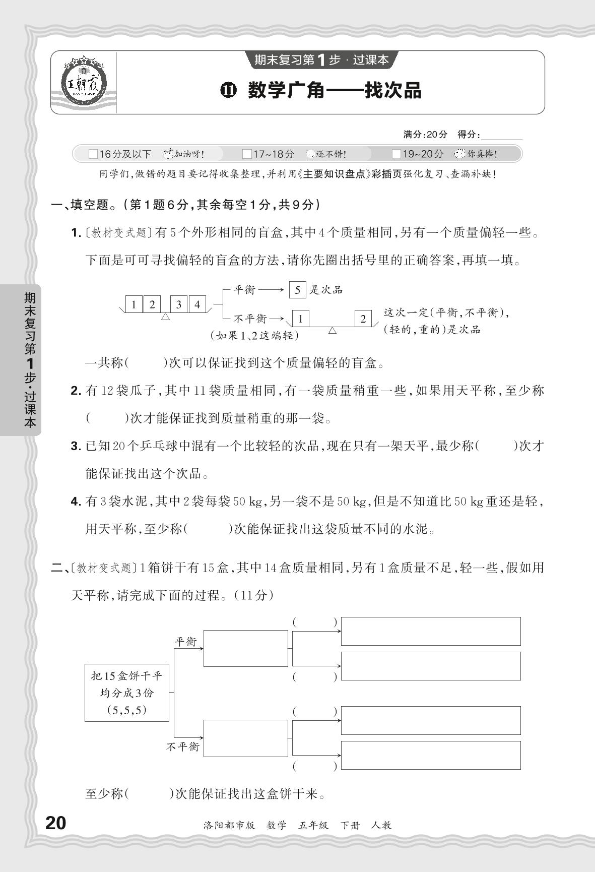 2024春下册五年级数学人教版 期末过课本洛阳版·数学广角——找次品【11】
