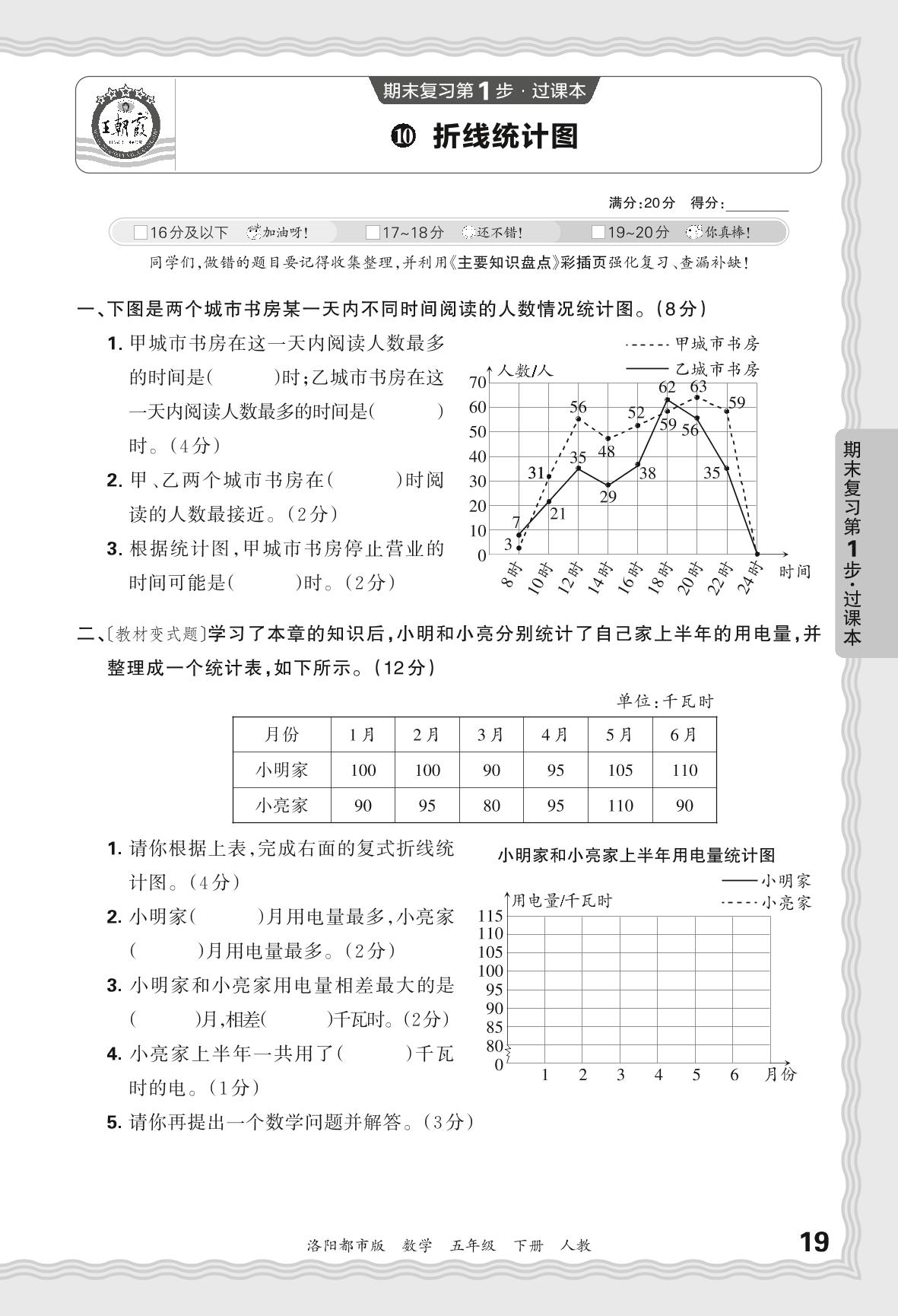 2024春下册五年级数学人教版 期末过课本洛阳版·折线统计图【10】
