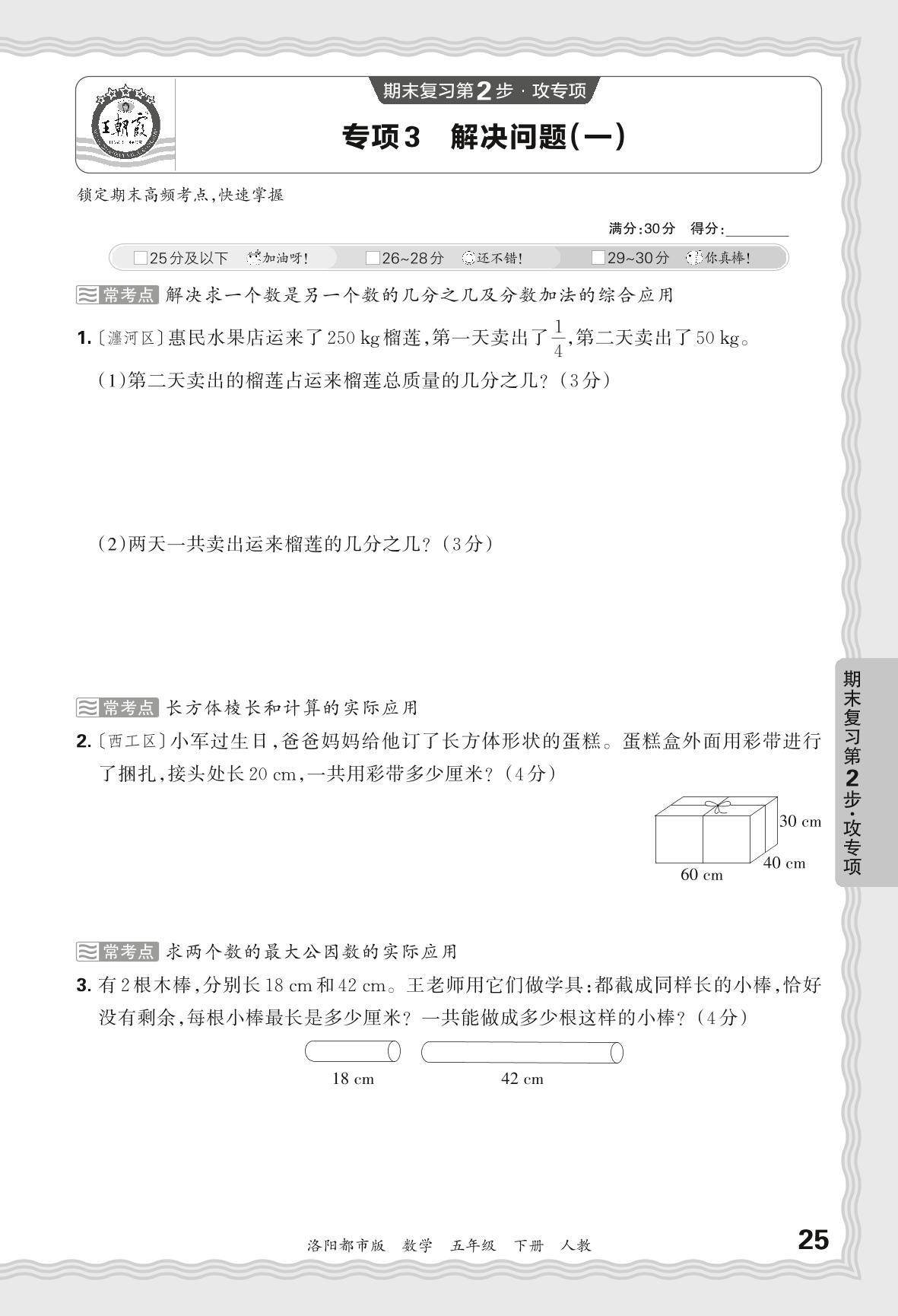 2024春下册五年级数学人教版 期末专项卷洛阳版·解决问题(一)【3】