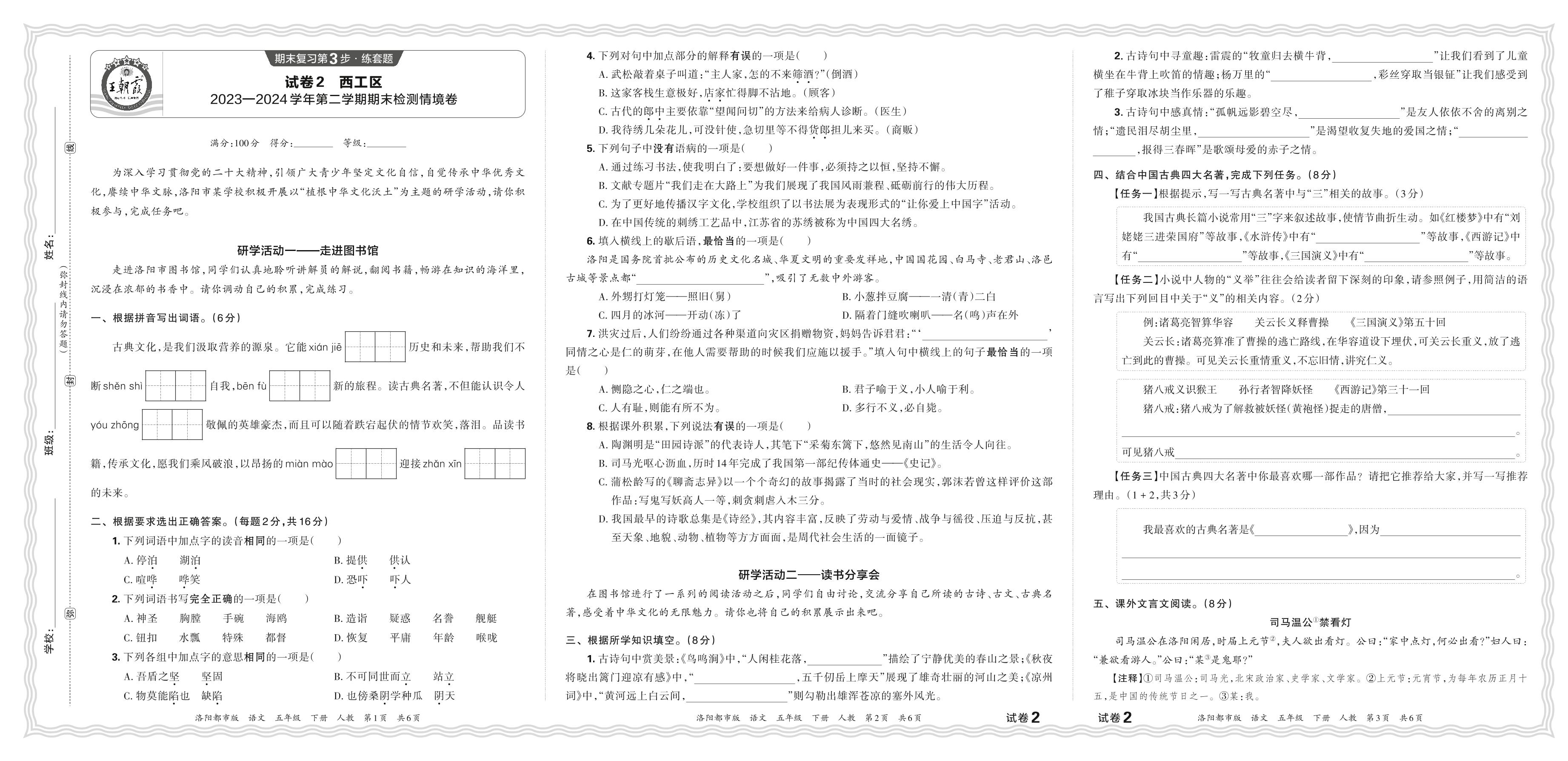 河南省洛阳市西工区2023—2024学年第二学期五年级语文期末检测情境卷(人教版)【2】