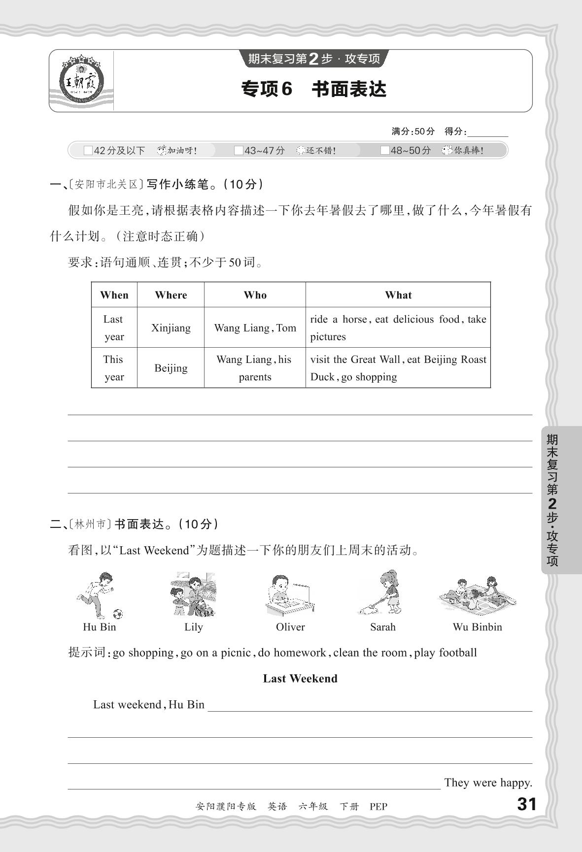 2024春下册六年级英语人教PEP版 期末专项卷安阳濮阳版·书面表达【6】