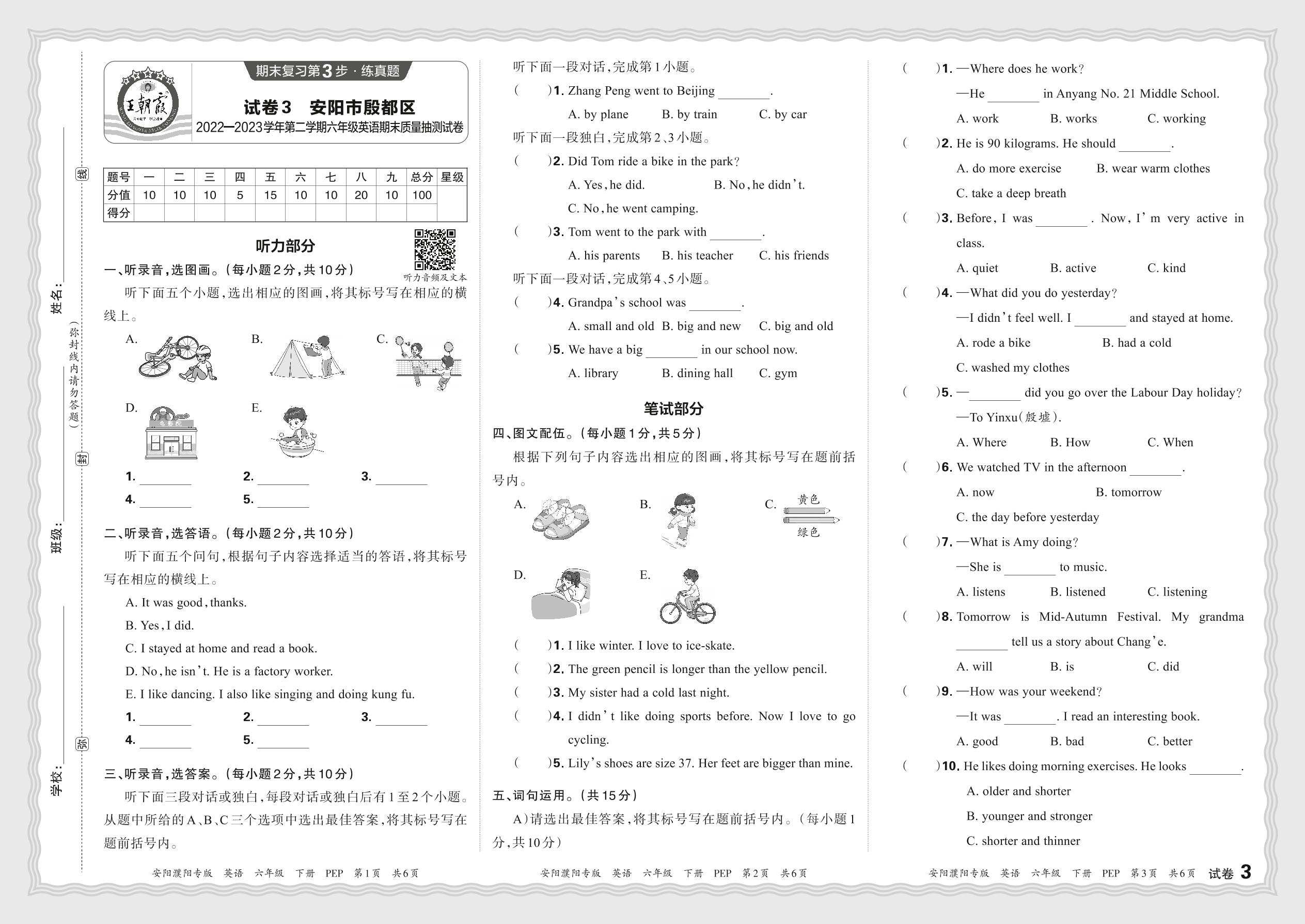 河南省安阳市殷都区2022-2023学年第二学期六年级英语期末质量抽测试卷(人教PEP版)【3】