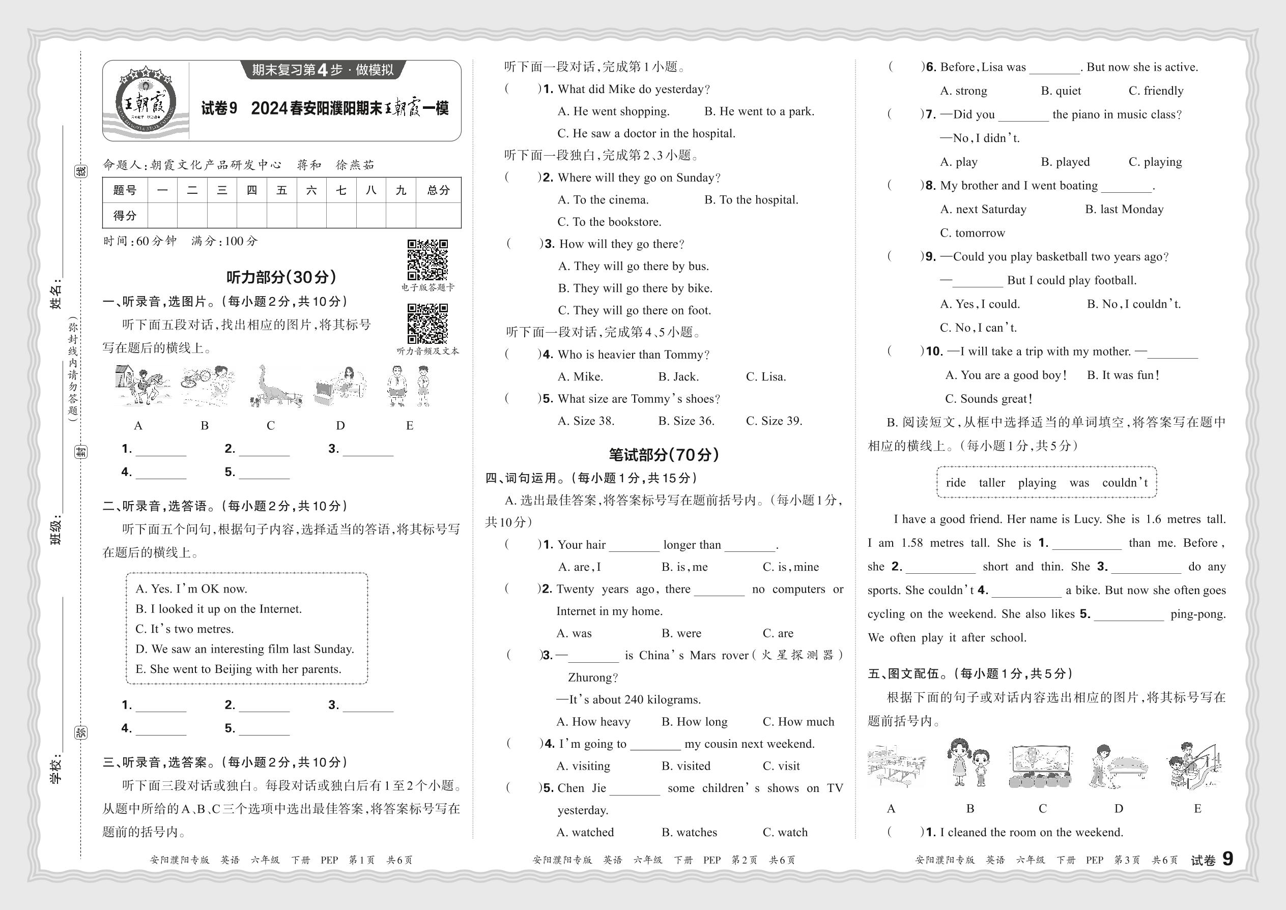 2024春下册六年级英语人教PEP版 河南安阳濮阳期末王朝霞一模【9】