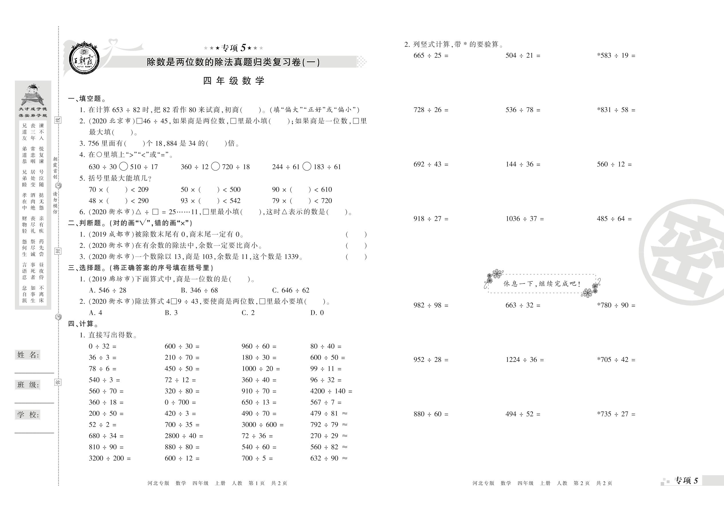 王朝霞期末专项卷——除数是两位数的除法真题归类复习四年级上册数学(人教版)【0】