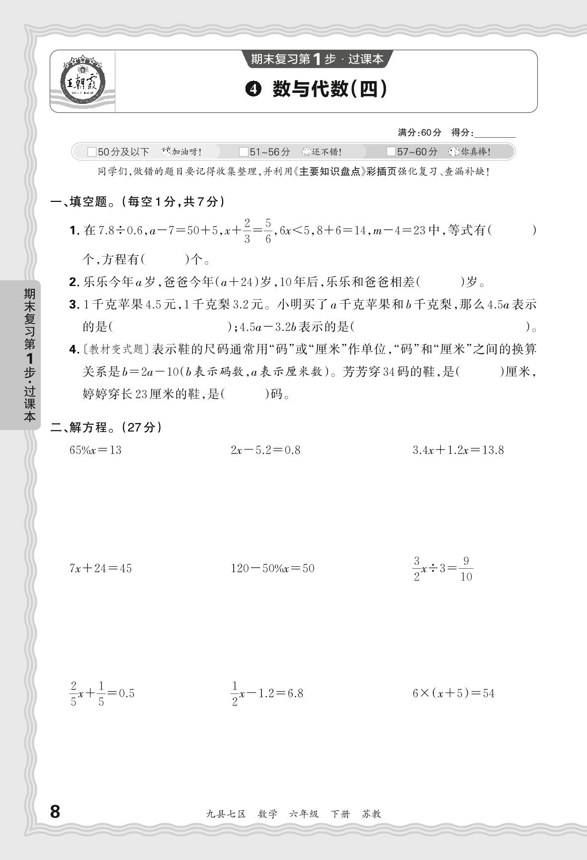 2024春下册六年级数学苏教版 期末过课本洛阳版·数与代数(一)【4】