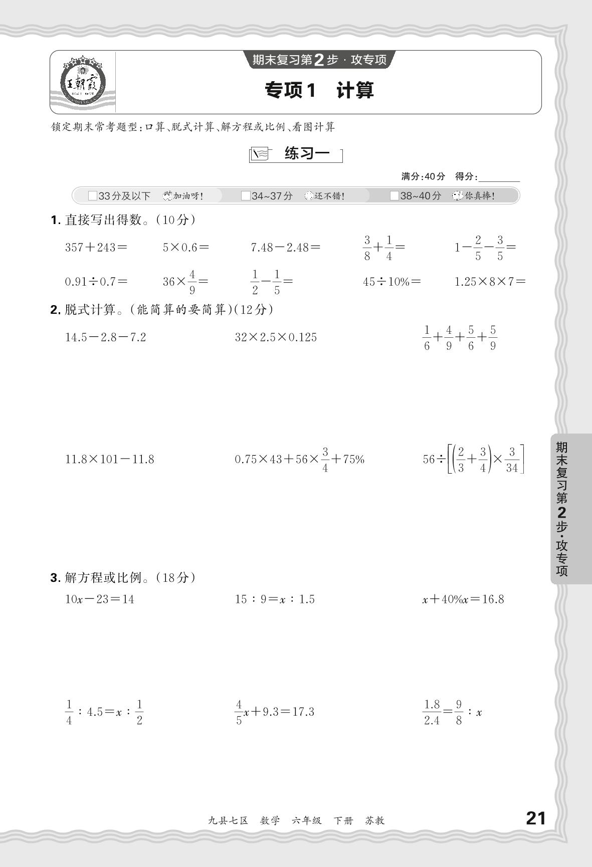 2024春下册六年级数学苏教版 期末专项卷洛阳版·计算【1】
