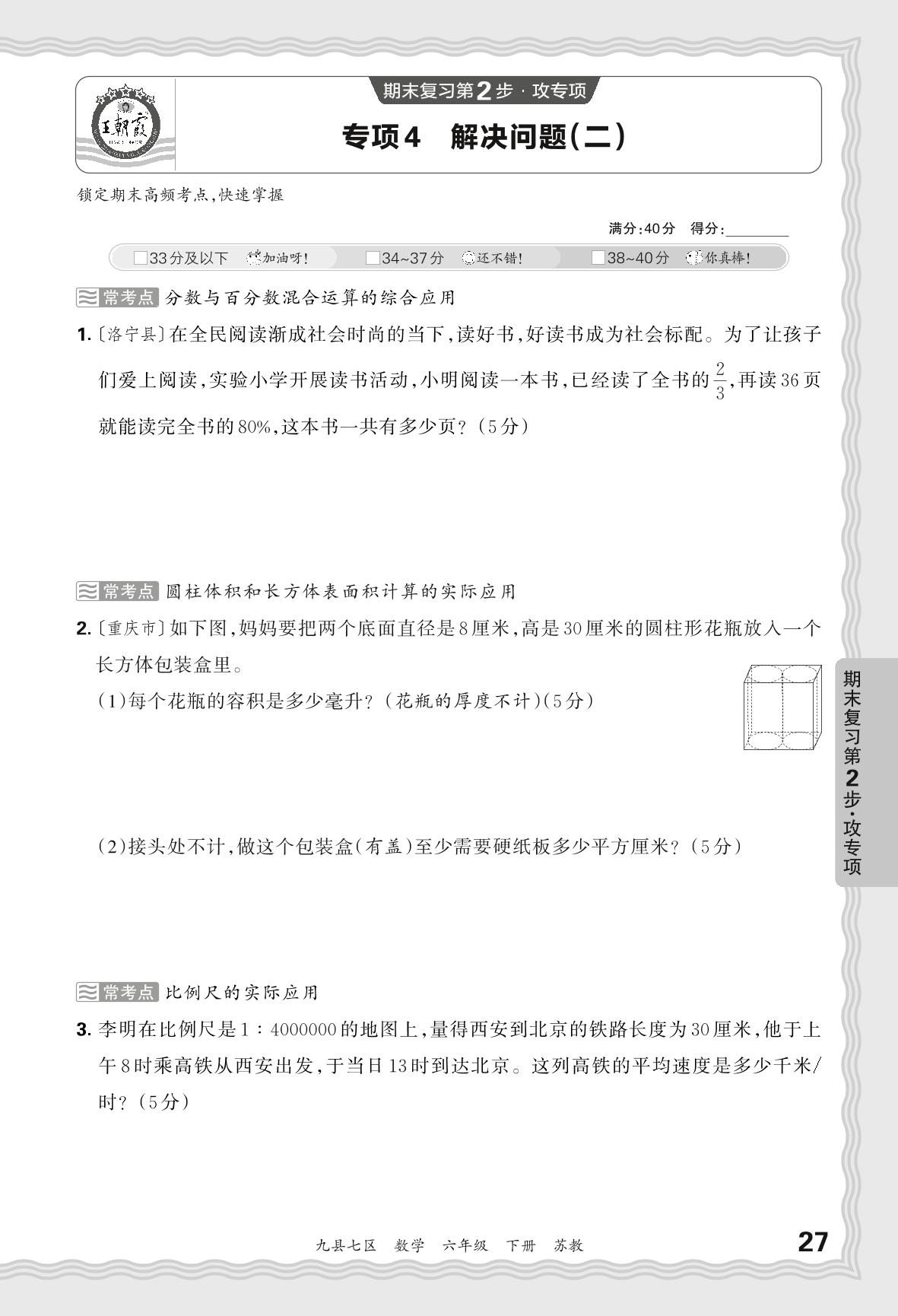 2024春下册六年级数学苏教版 期末专项卷洛阳版·解决问题(二)【4】