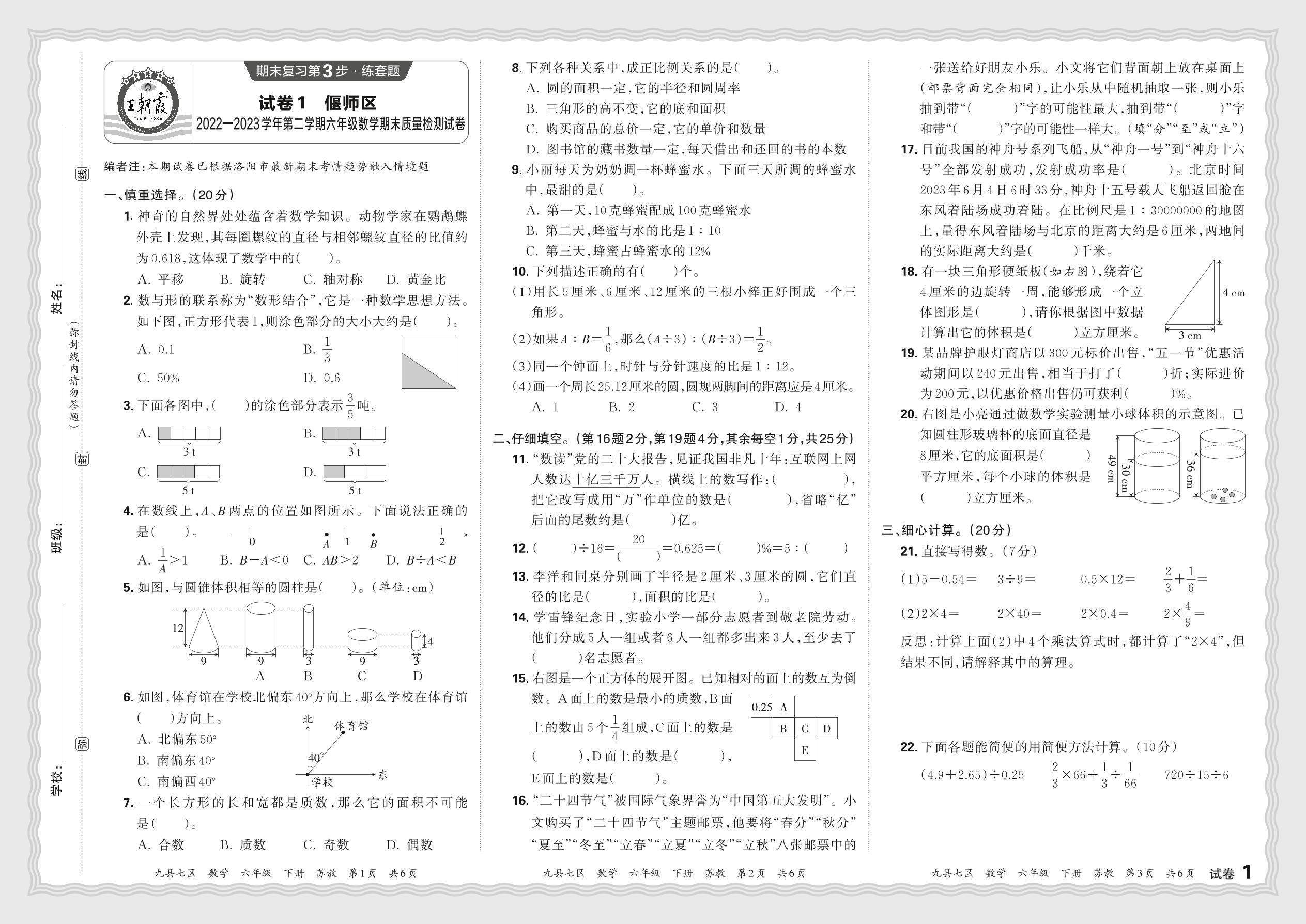 河南省洛阳市偃师区2023—2024学年第二学期六年级数学期末质量检测试卷(苏教版)【1】