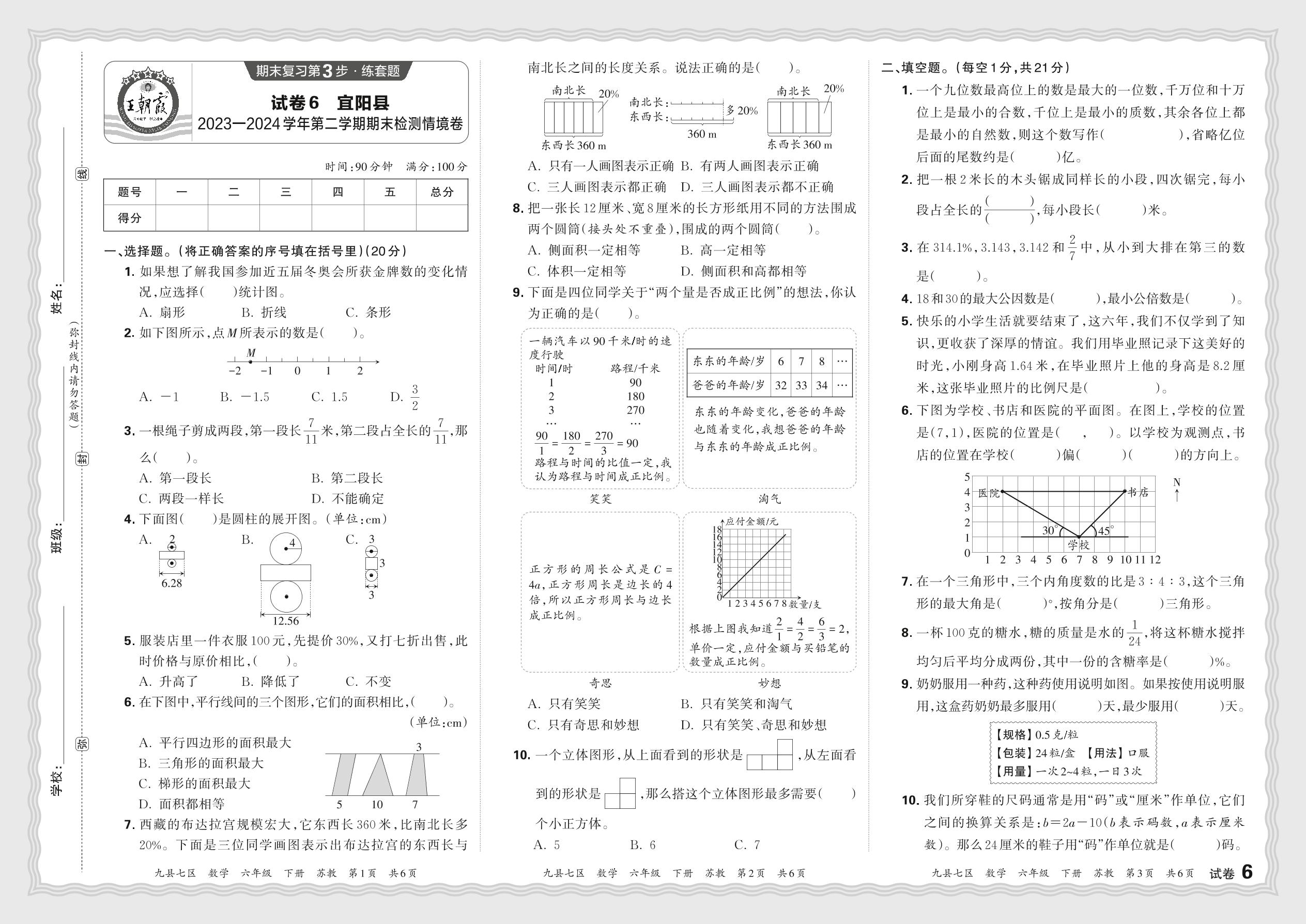 河南省洛阳市宜阳县2023—2024学年第二学期六年级数学期末检测情境卷(苏教版)【6】