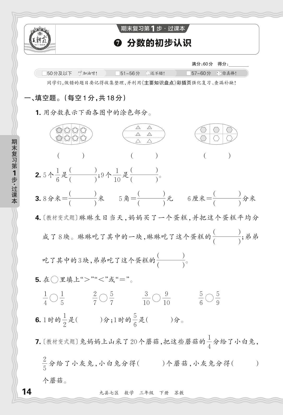 2024春下册三年级数学苏教版 期末过课本洛阳版·分数的初步认识【7】