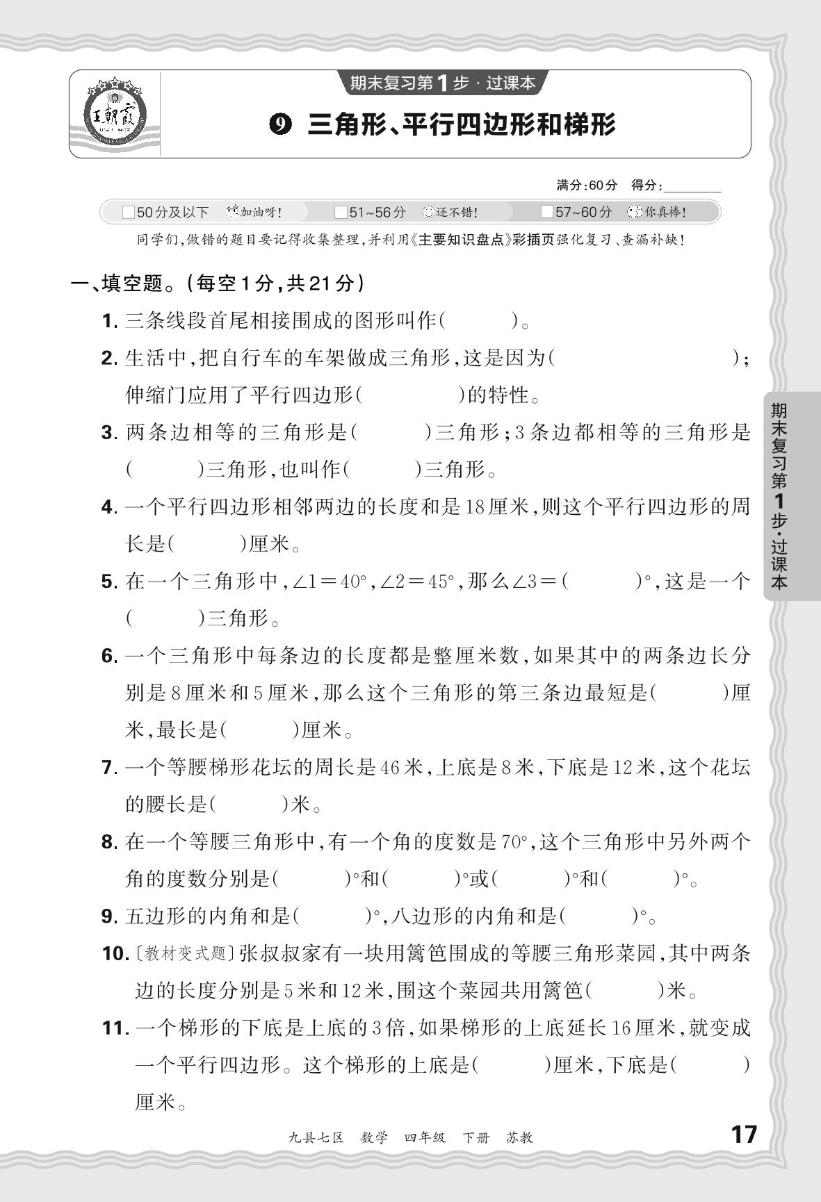2024春下册四年级数学苏教版 期末过课本洛阳版·三角形、平行四边形和梯形【9】