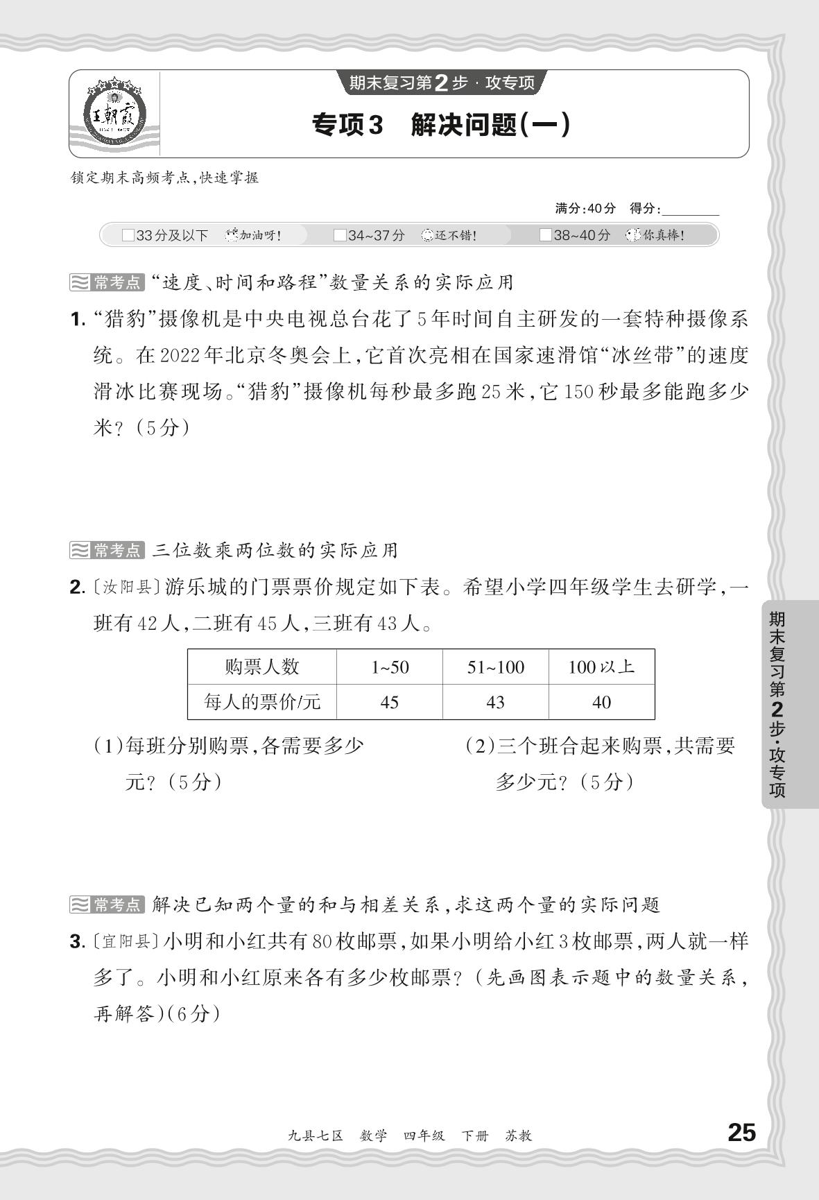 2024春下册四年级数学苏教版 期末专项卷洛阳版·解决问题(一)【3】