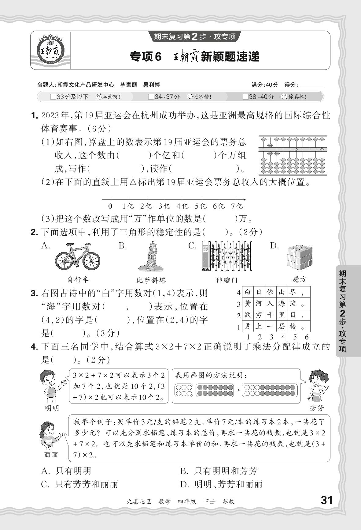 2024春下册四年级数学苏教版 期末专项卷洛阳版·王朝霞新颖题速递【6】