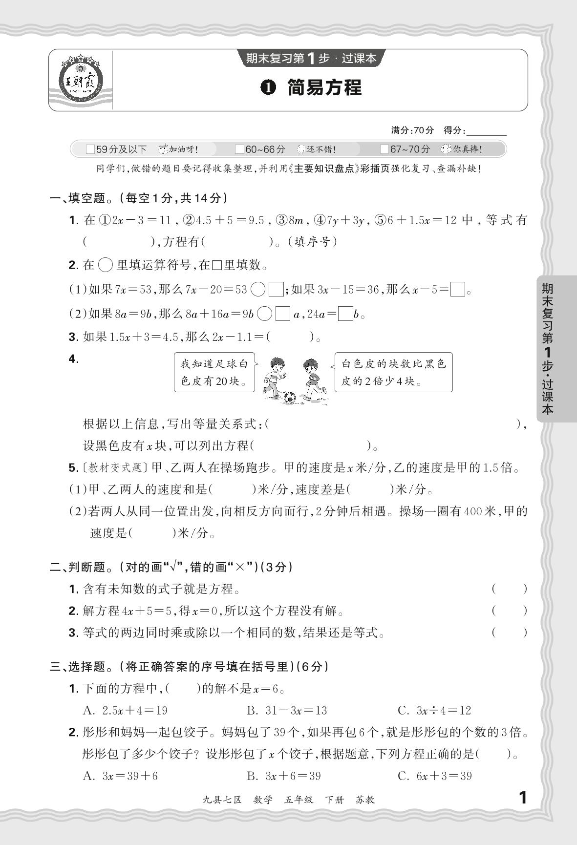2024春下册五年级数学苏教版 期末过课本洛阳版·简易方程【1】