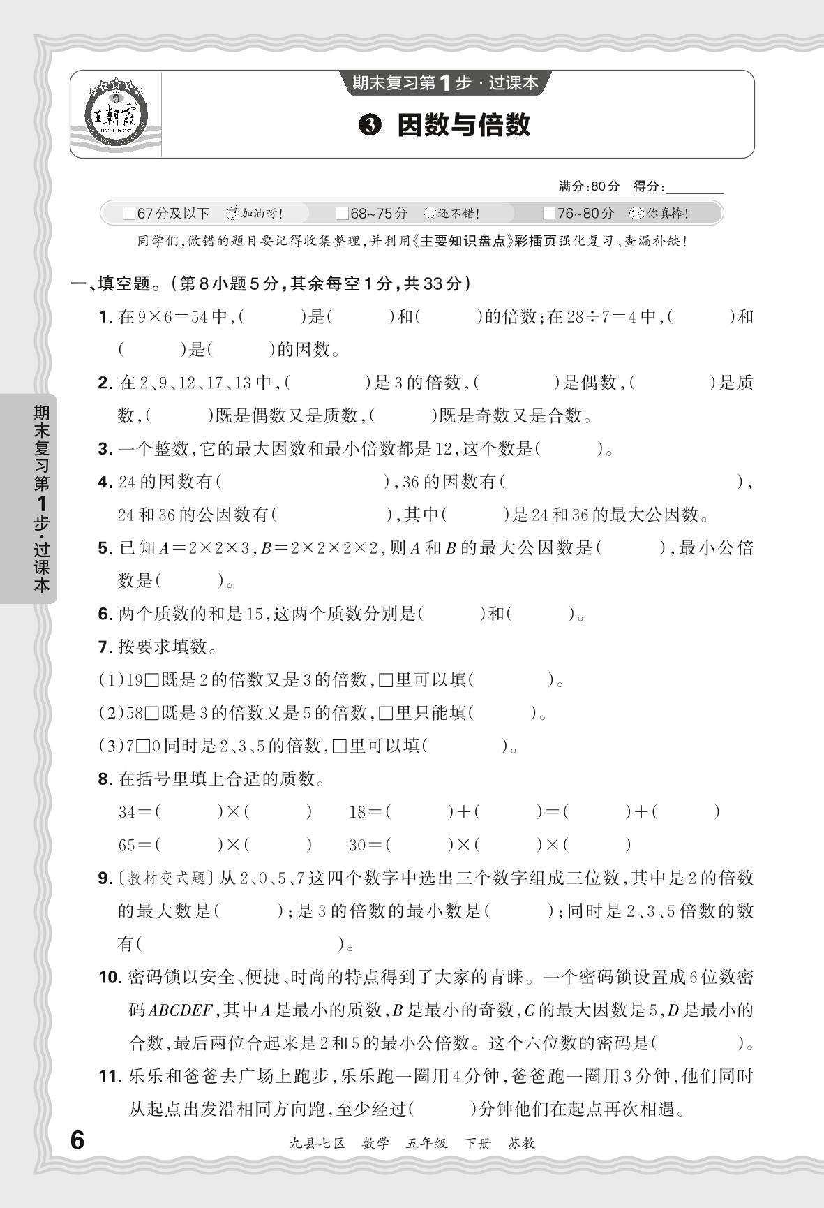 2024春下册五年级数学苏教版 期末过课本洛阳版·因数和倍数【3】