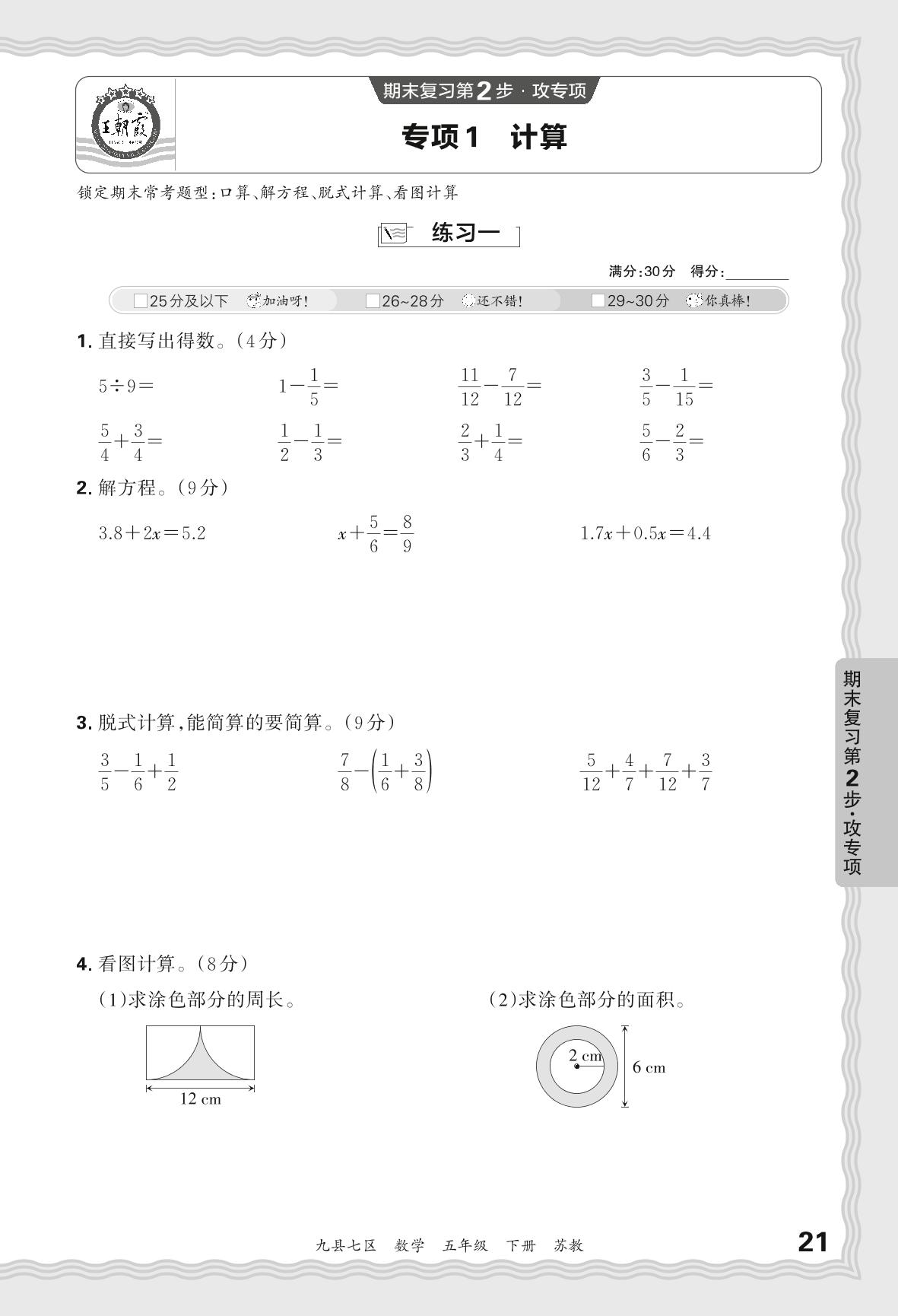 五年级数学苏教版下册专项卷