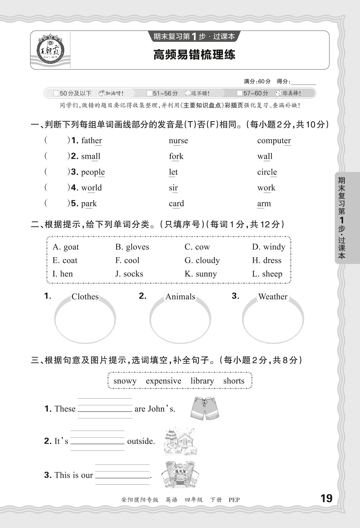 2024春下册四年级英语人教PEP版 期末过课本安阳濮阳版·高频易错梳理练