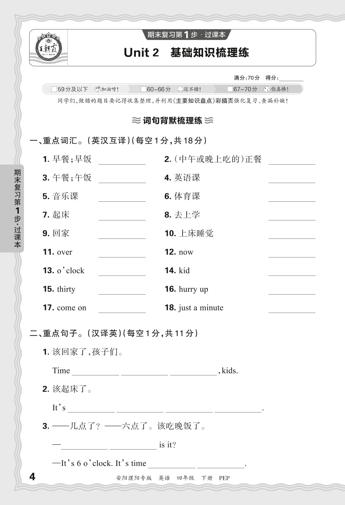 2024春下册四年级英语人教PEP版 期末过课本安阳濮阳版·Unit 2 基础知识梳理练