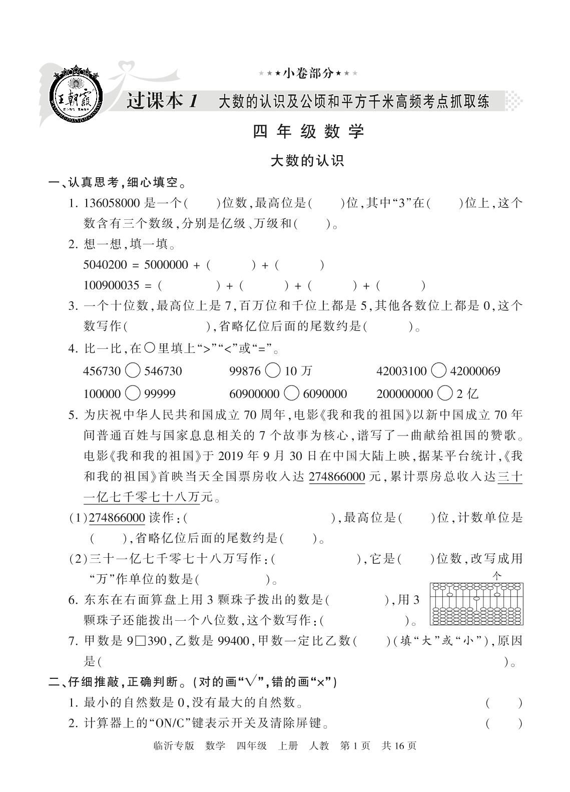 王朝霞期末小卷四年级上册数学(人教版)_R210804140726【0】