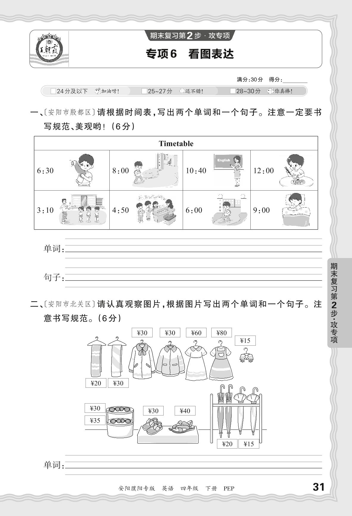 2024春下册四年级英语人教PEP版 期末专项卷安阳濮阳版·看图表达【6】