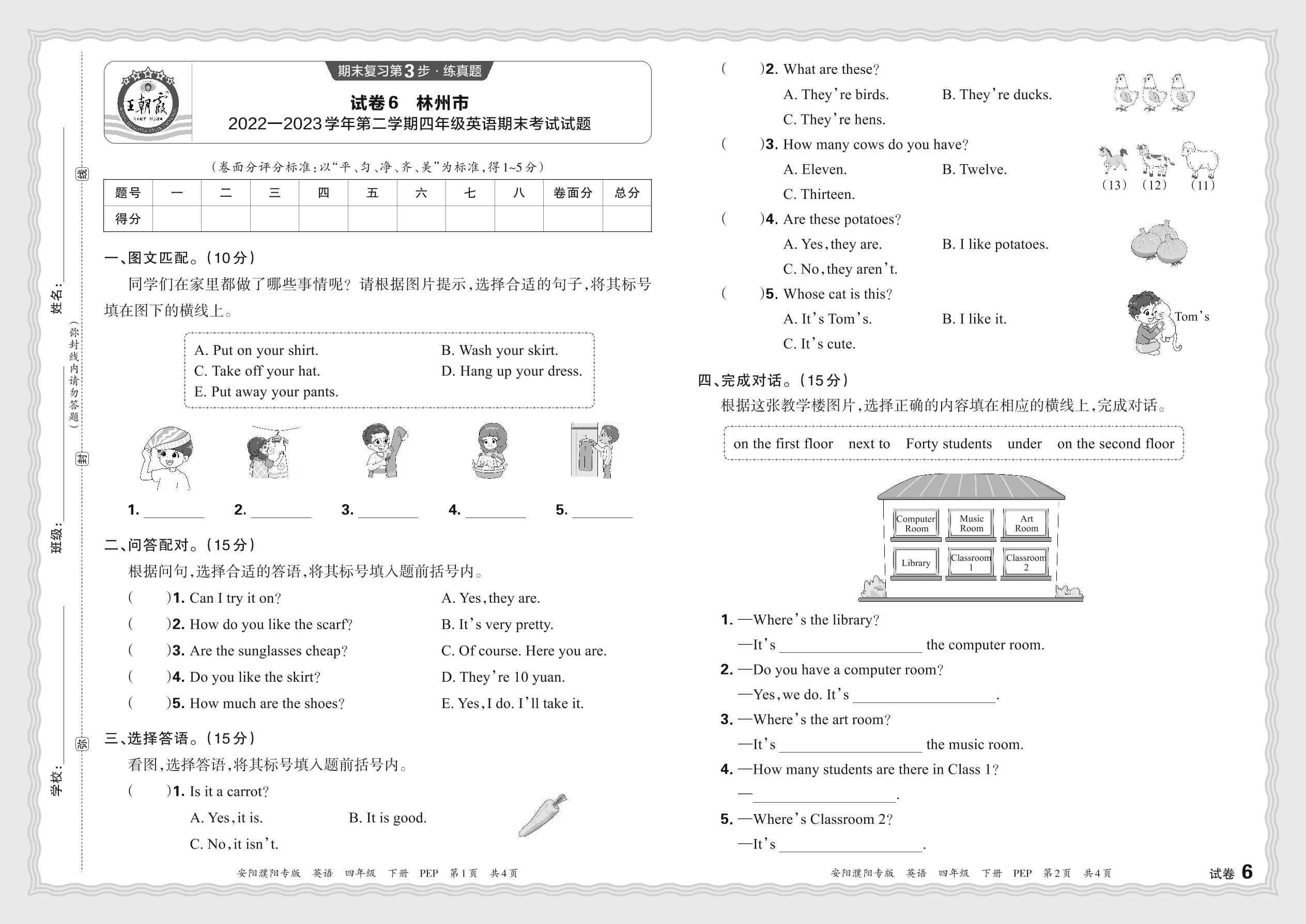 河南省安阳市林州市2022-2023学年第二学期四年级英语期末考试试题(人教PEP版)【6】