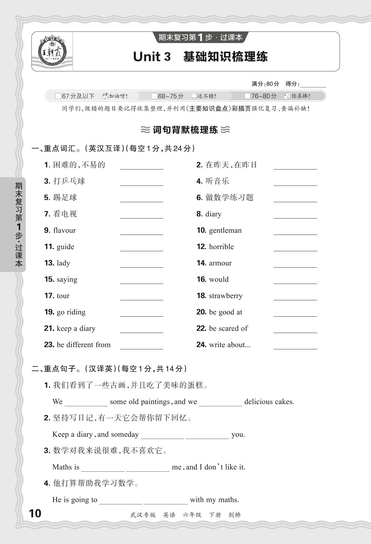 2024春下册六年级英语剑桥版 期末过课本武汉版·Unit 3 基础知识梳理练