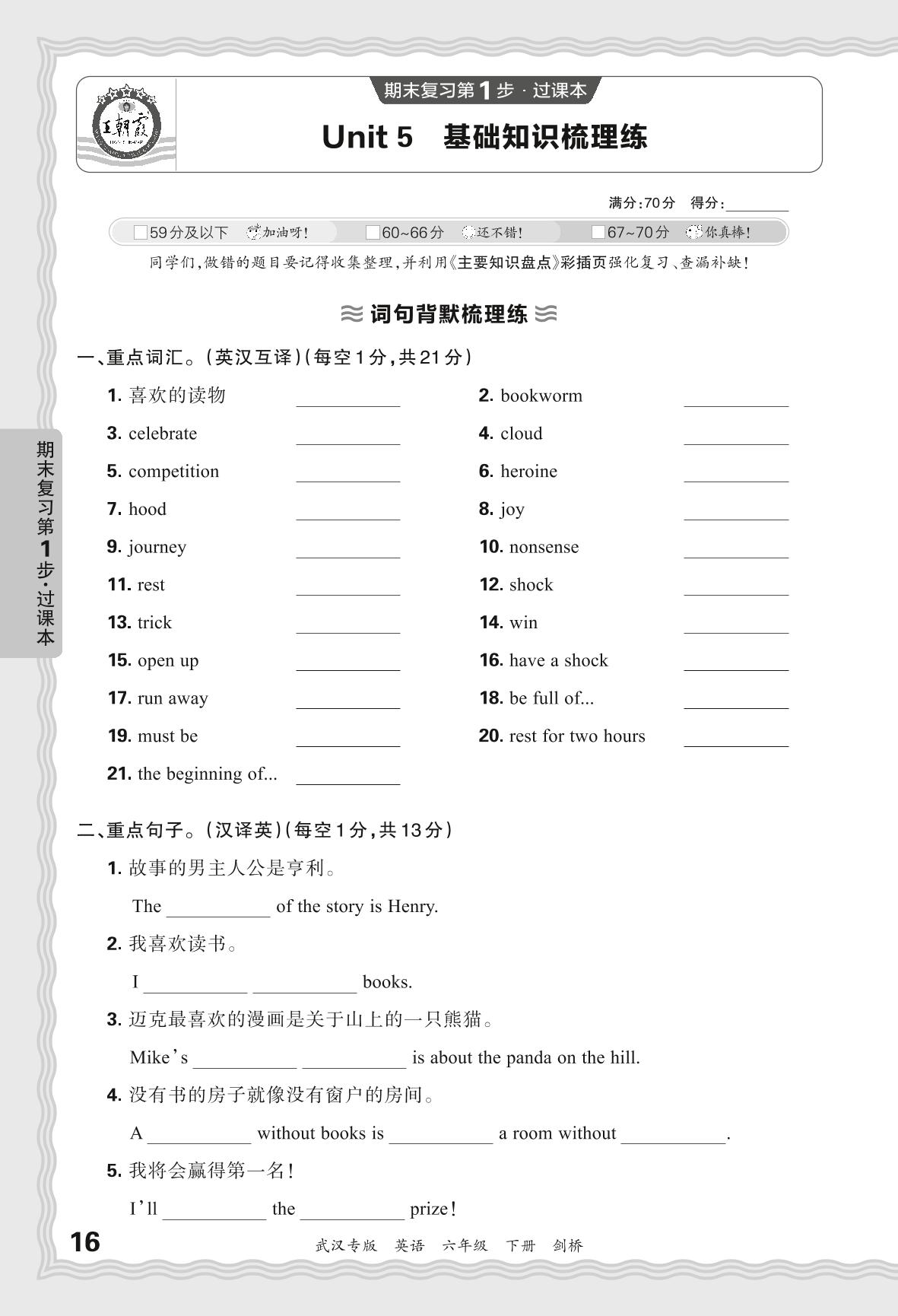 2024春下册六年级英语剑桥版 期末过课本武汉版·Unit 5 基础知识梳理练