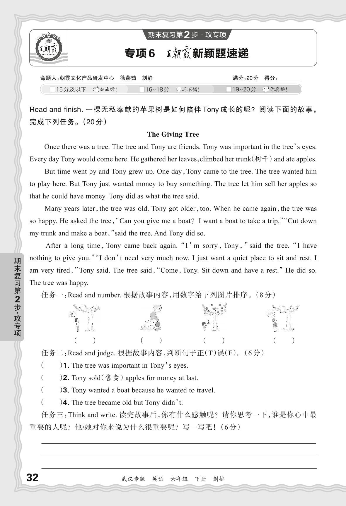 2024春下册六年级英语剑桥版 期末专项卷武汉版·王朝霞新颖题速递【6】