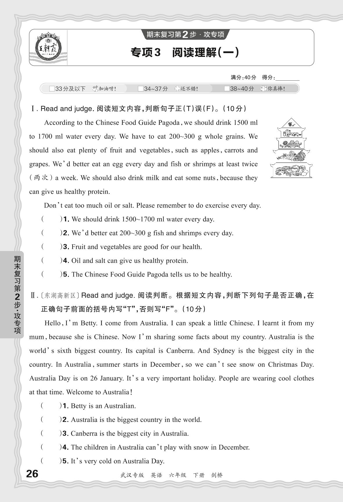 2024春下册六年级英语剑桥版 期末专项卷武汉版·阅读理解(一)【3】