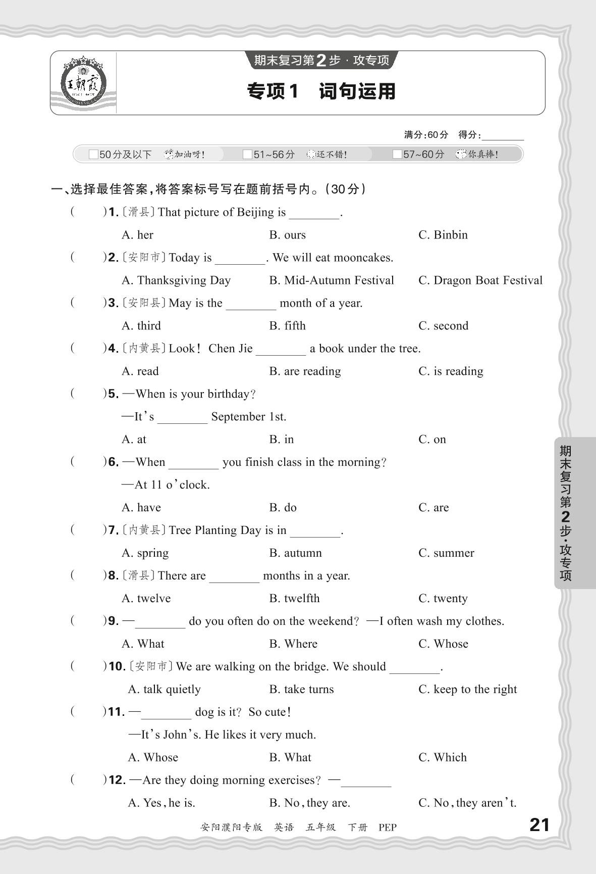 2024春下册五年级英语人教PEP版 期末专项卷安阳濮阳版·词句运用【1】