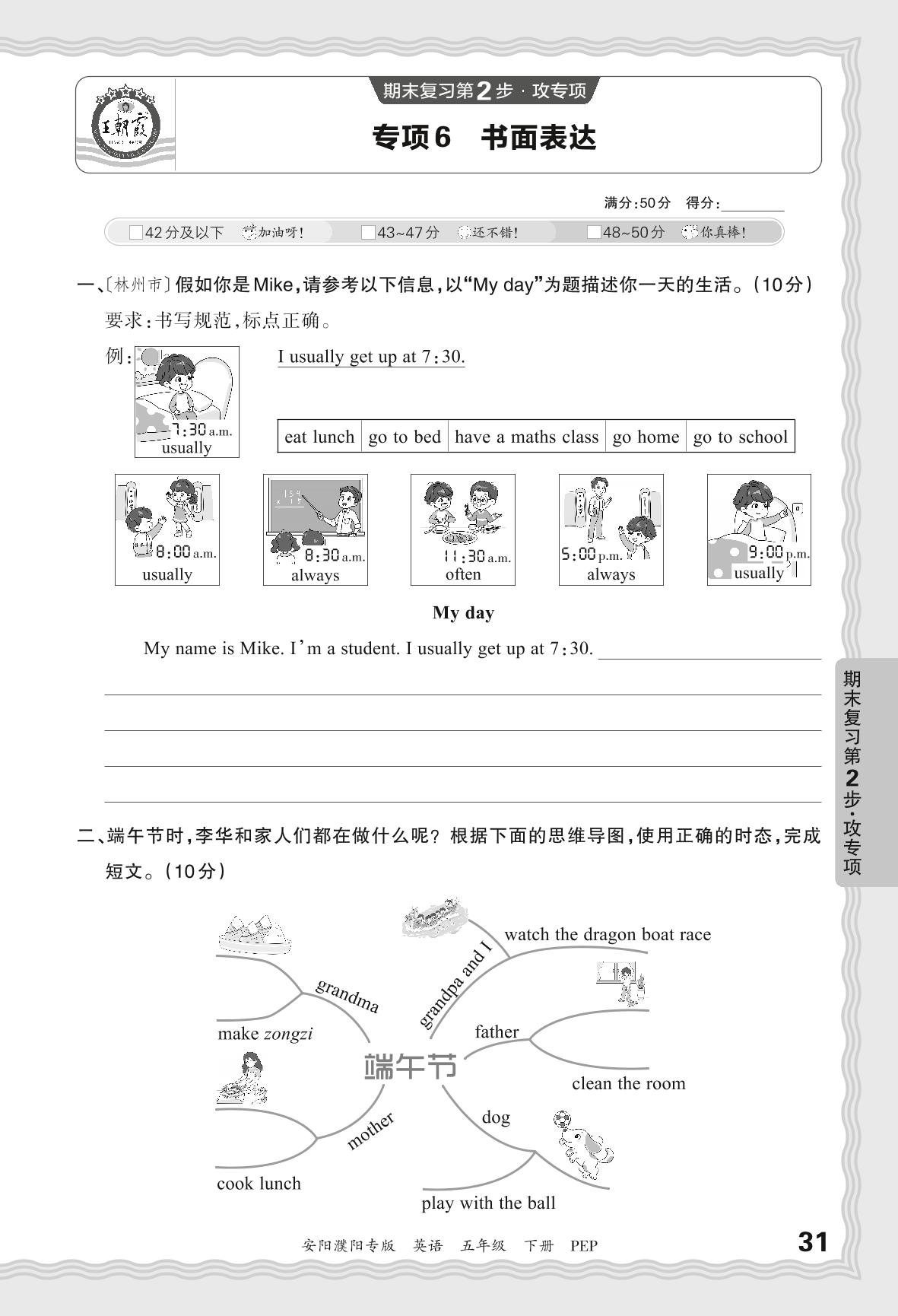 2024春下册五年级英语人教PEP版 期末专项卷安阳濮阳版·书面表达【6】
