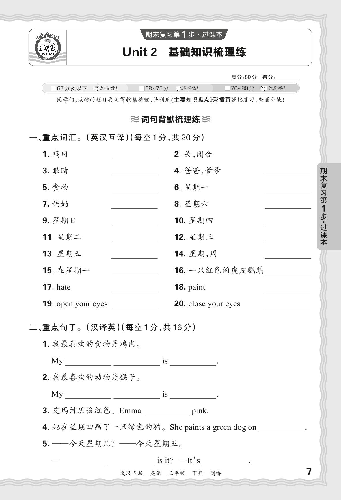 2024春下册三年级英语剑桥版 期末过课本武汉版·Unit 2 基础知识梳理练
