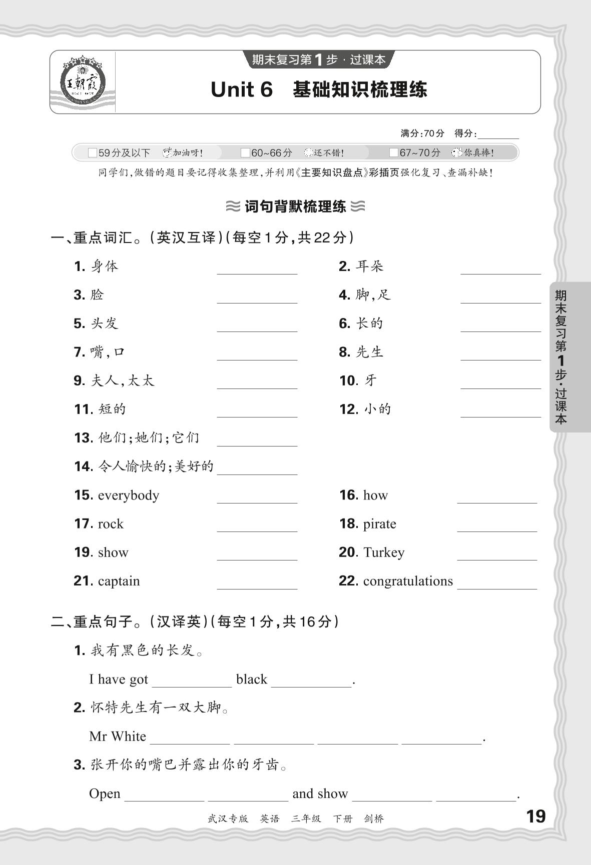2024春下册三年级英语剑桥版 期末过课本武汉版·Unit 6 基础知识梳理练