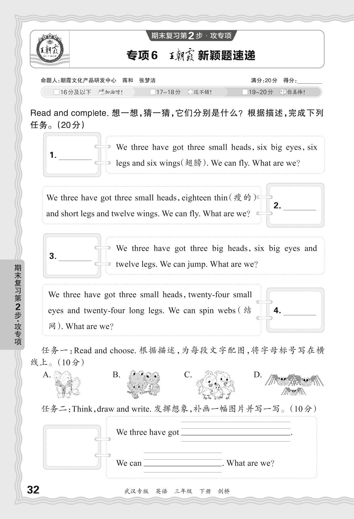 2024春下册三年级英语剑桥版 期末专项卷武汉版·王朝霞新颖题速递【6】