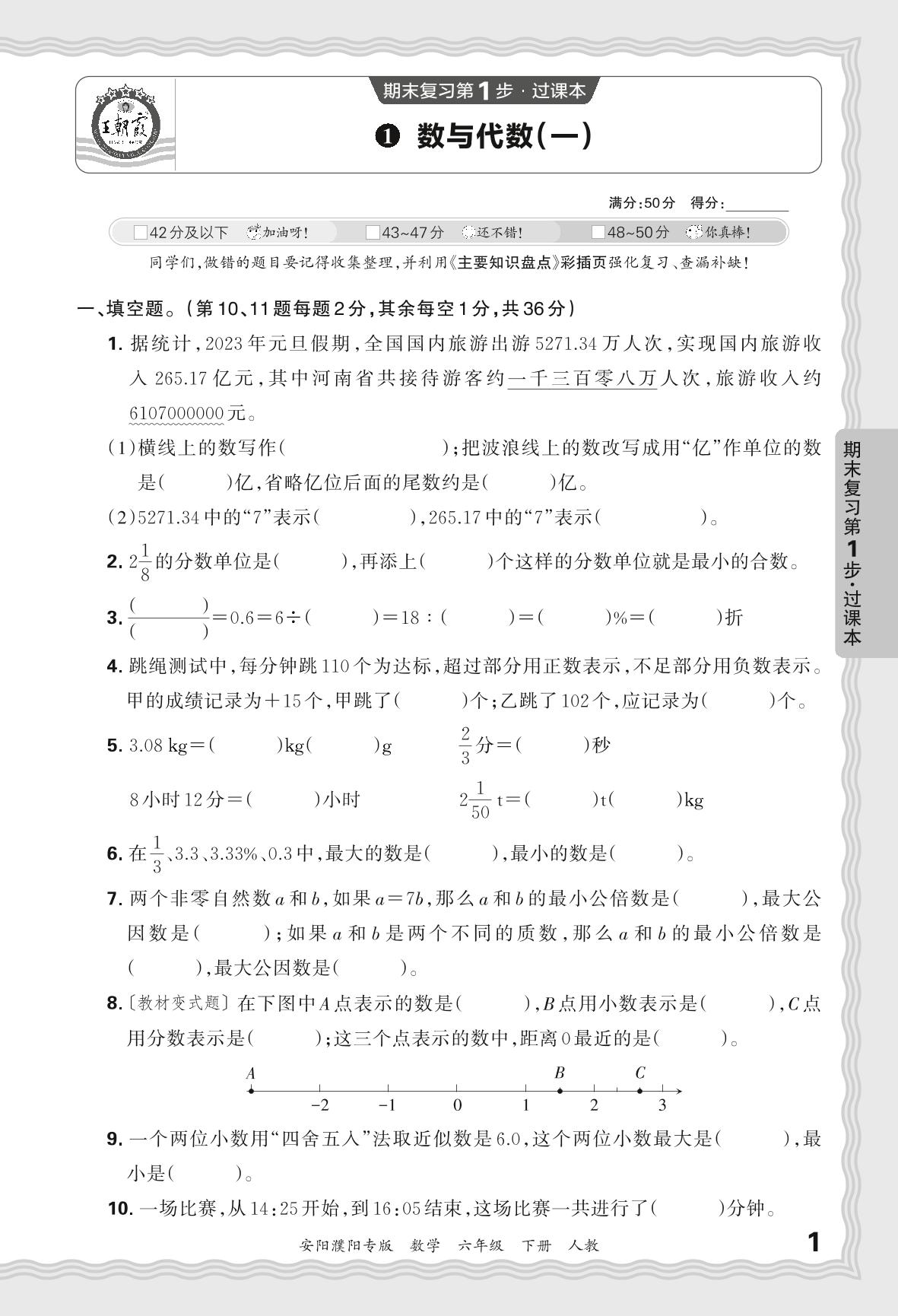 2024春下册六年级数学人教版 期末过课本安阳濮阳版·数与代数(一)