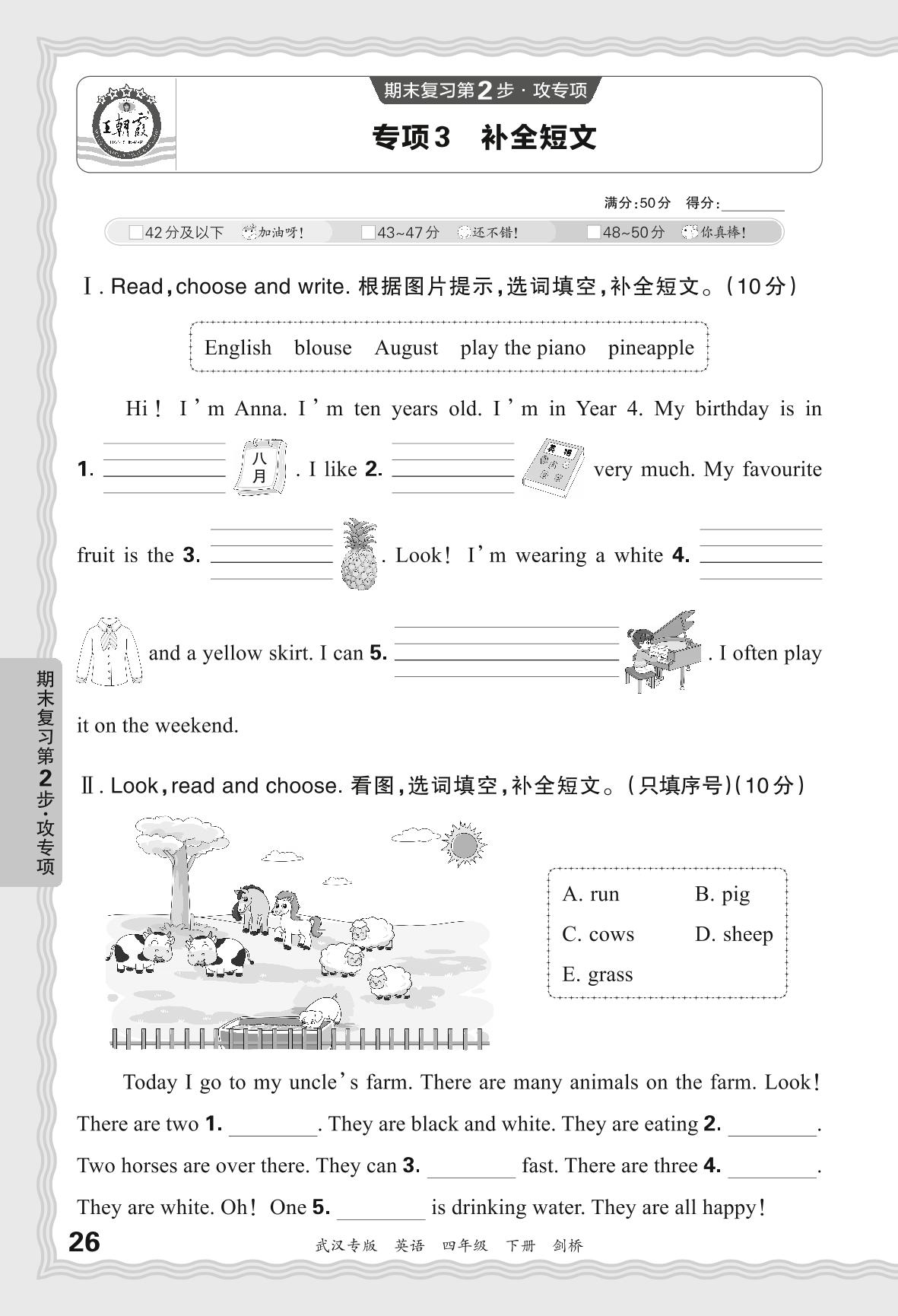 2024春下册四年级英语剑桥版 期末专项卷武汉版·补全短文【3】