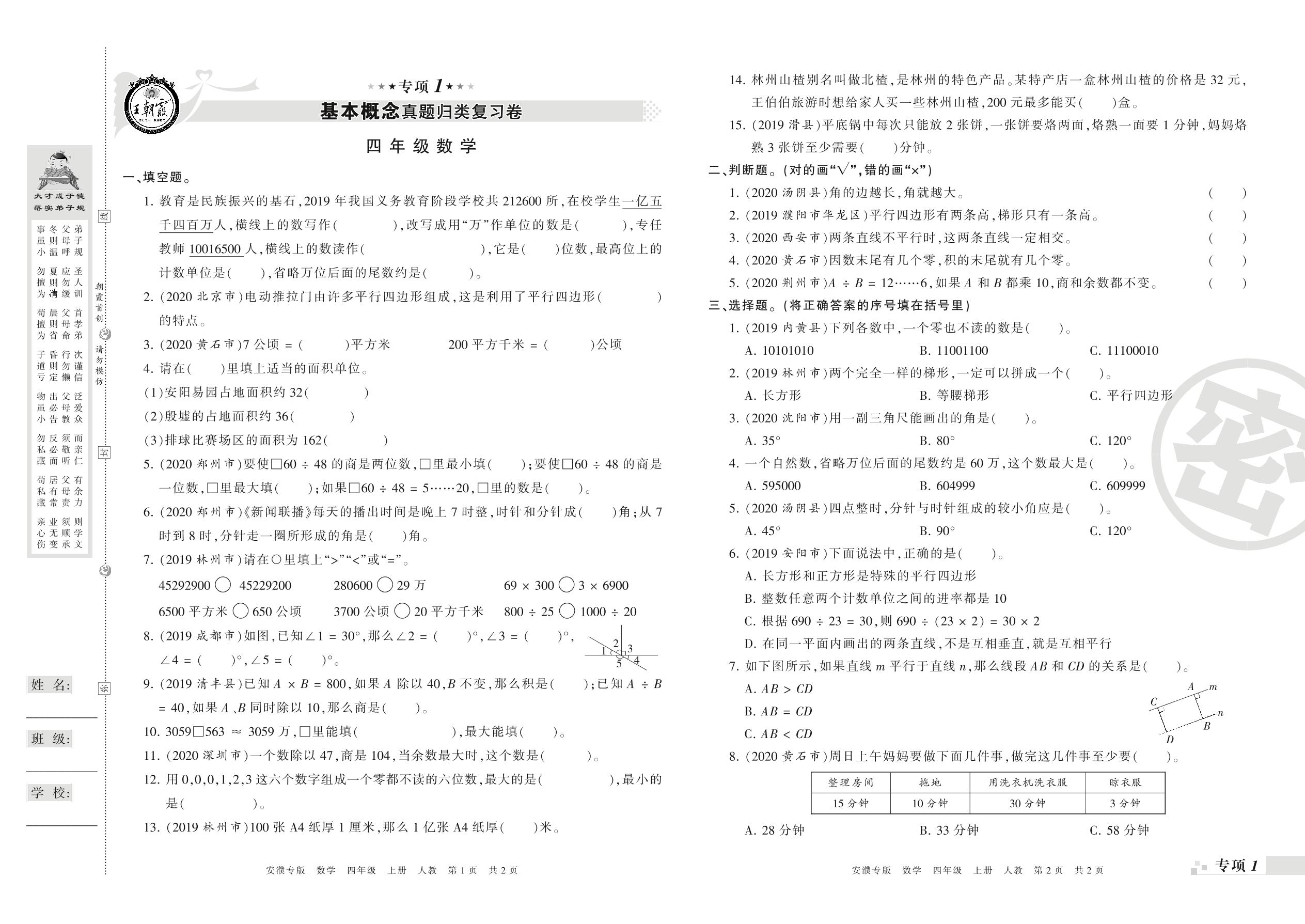 王朝霞期末专项卷——基本概念、计算真题归类复习四年级上册数学(人教版)_R210804140828【0】