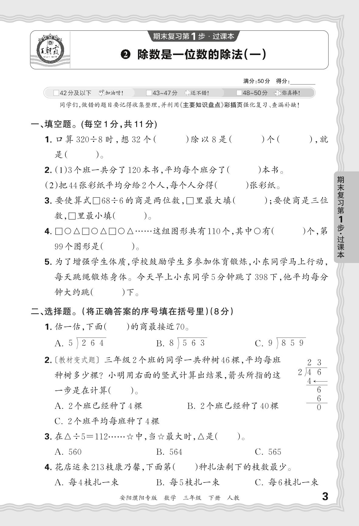 2024春下册三年级数学人教版 期末过课本安阳濮阳版·除数是一位数的除法(一)【2】