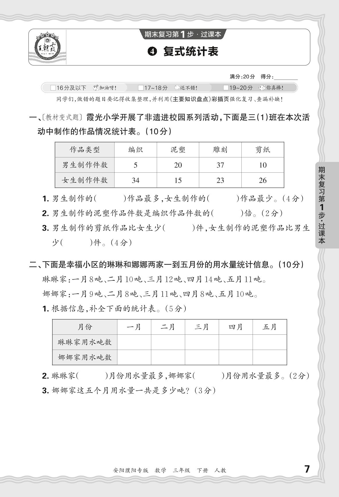 2024春下册三年级数学人教版 期末过课本安阳濮阳版·复式统计表【4】
