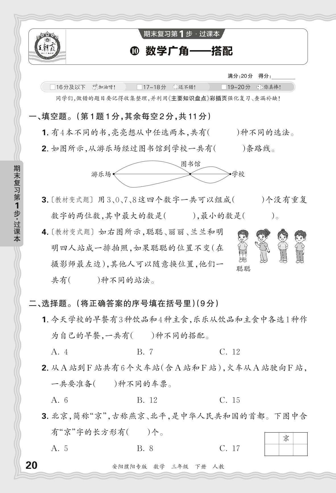 2024春下册三年级数学人教版 期末过课本安阳濮阳版·数学广角——搭配【10】