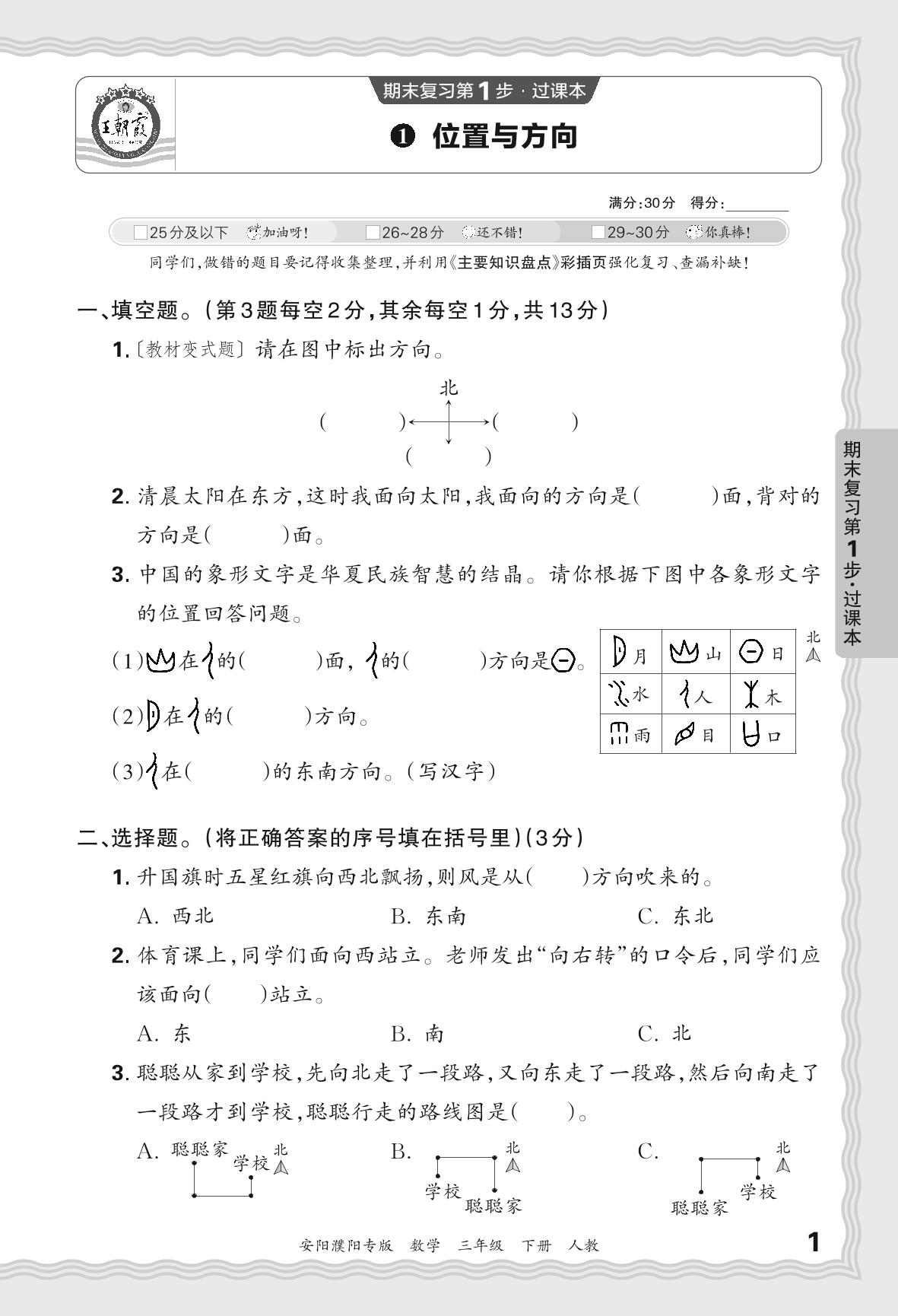 2024春下册三年级数学人教版 期末过课本安阳濮阳版·位置与方向【1】