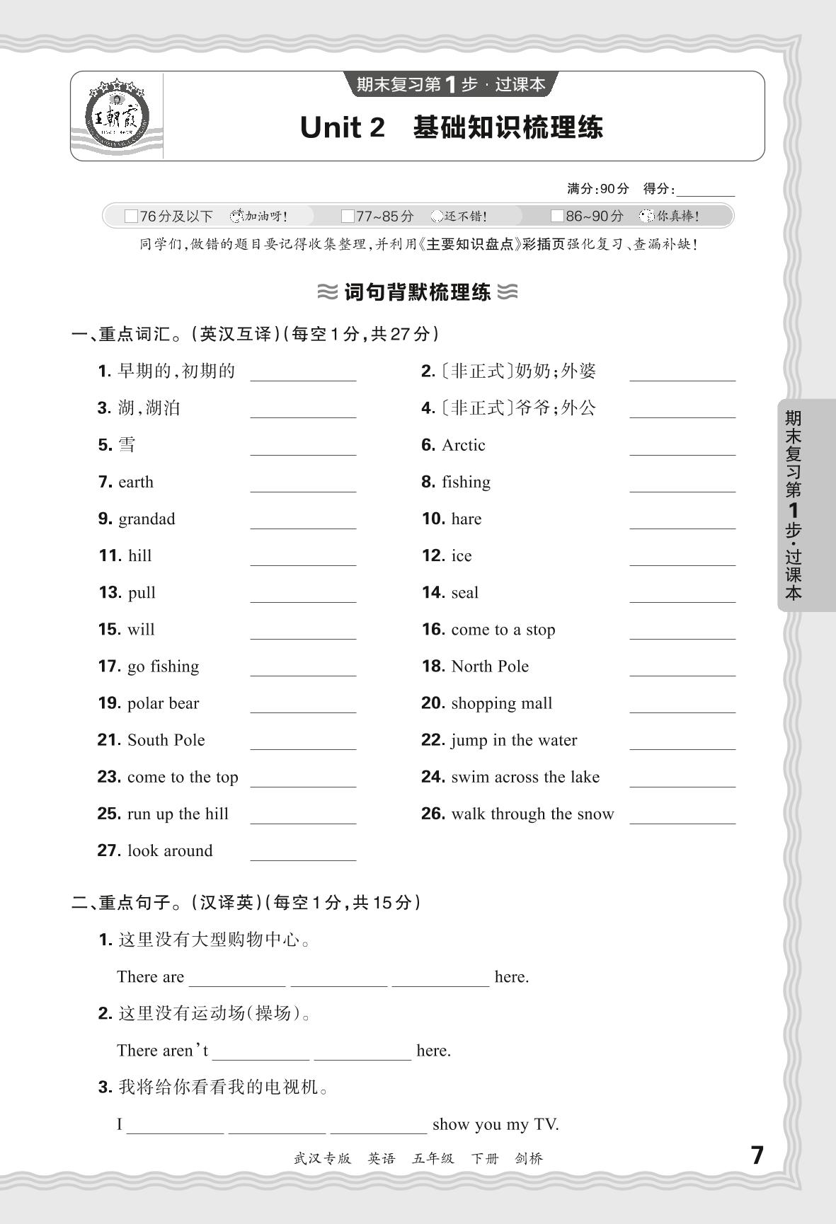 2024春下册五年级英语剑桥版 期末过课本武汉版·Unit 2 基础知识梳理练